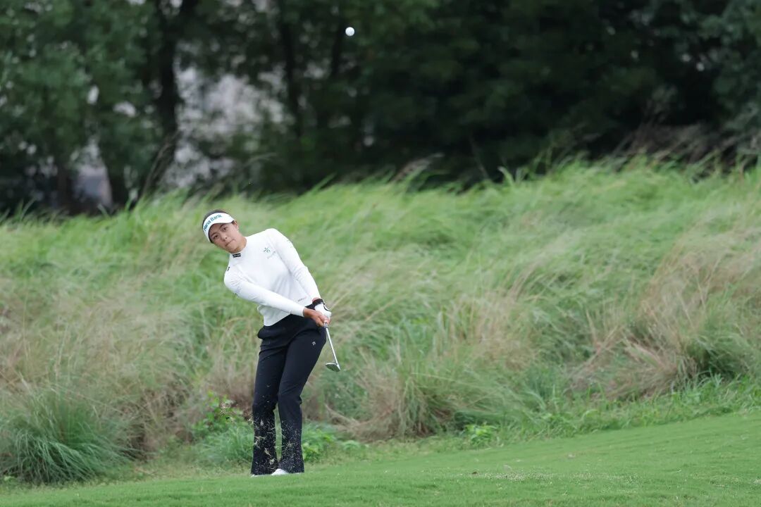 然而有那么一刻,剧本好似并不会这么书写。在寒冷的秋风中,2023女子中巡奖金王、泰国选手谢尔曼从倒数第二组出发,在前6个洞抓到3只小鸟,从今天开始时落后一杆,跃升到榜首位置。与之相对,两位并列领先者庞润芝和王梓萱却有点挣扎,滑落到了后边。