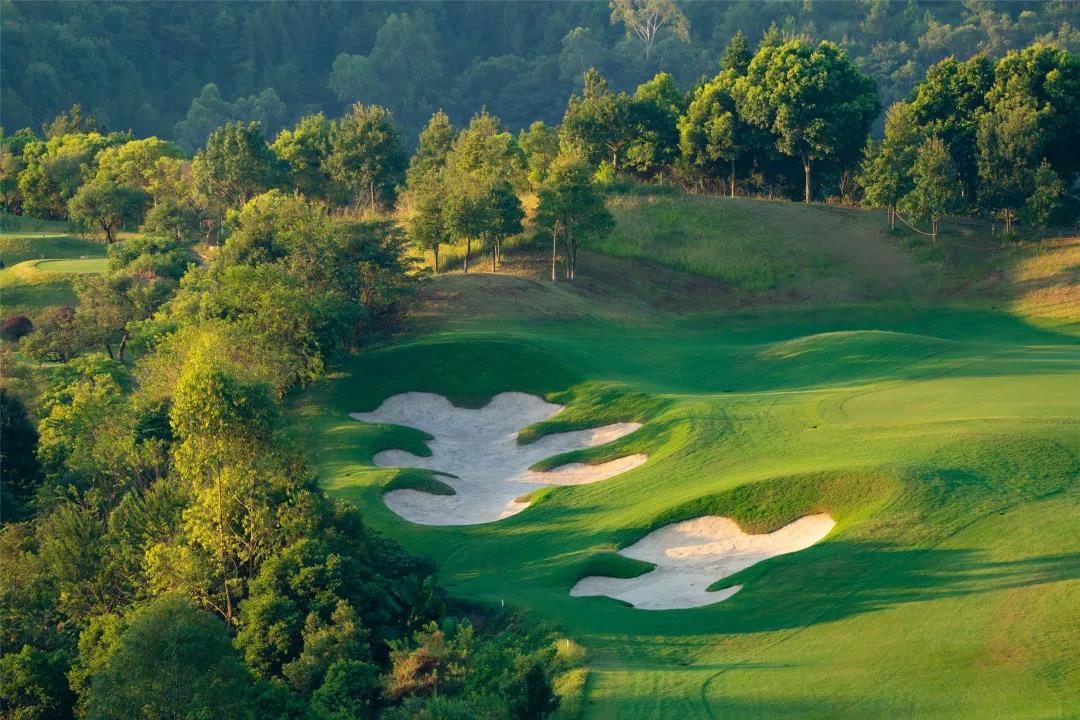 18洞国际锦标赛级山地高尔夫球场,占地1500多亩,整个球场充分利用地势精心布局、独具匠心、造型完美。球场迂回穿梭于山脊和沟壑之间,与大自然巧妙地融为一体。跌宕起伏的丘陵地势,成就了麓湖山国际高尔夫球场的独特魅力。由国际著名设计师主持设计,18洞设置,球道全长7312码,标准72杆。球道及果岭分别选用夏威夷草和老鹰草。球场迂迴曲折于山脊沟水之间,发球台与球道落差高达100多米,具视野开阔、多层次感和趣味与挑战共存的特色。
