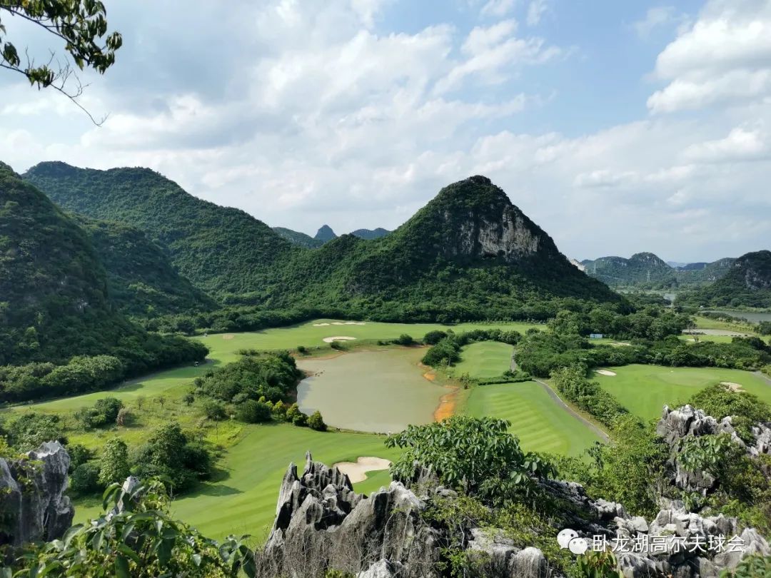 柳州卧龙湖高尔夫俱乐部依山傍水,属于典型的喀斯特地貌球场,四周地形蜿蜒起伏,山峦叠翠,形成"拔地奇峰画卷开"的壮丽景色。球场设计充分利用自然环境,青山绿水相得映彰,球场自然植被丰富,球场设计崇尚自然、简约,坚持环保理念,球道全长7216码,标准杆72杆,球道平缓、长度适宜。每个洞都与平缓、宽阔、清澈的湖水紧紧相依、相映成趣,让球员们徜徉身心于山水之间,享受挥杆乐趣,欣赏壮丽的山河美景。独特的喀斯特地貌,使球场宛如人间仙境。