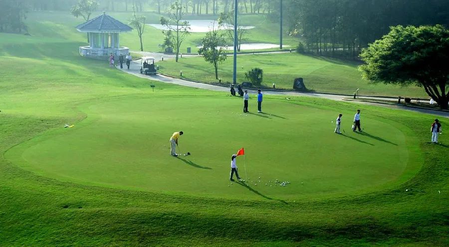 球场由国际著名球星柯林·蒙哥马利设计,IMG公司兼管理顾问,充分地将滨海地区原有的自然景观、原始地貌、天然植被与独特的沙坑和水障碍完美结合,造型更具多样化,同时也更富有挑战性,并且是海南岛上第一家运用新的“PASPALUM”海滨草的球场,使球道一年四季绿草如茵,是典型的城市滨海林地型球场。