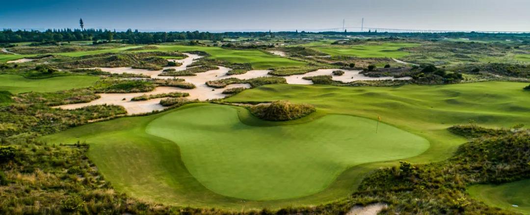 上海揽海国际高尔夫俱乐部拥有两个18洞球场,长江林克斯球场和森林球场,两座球场风格迥异,各具特色;森林球场由“金熊”杰克·尼克劳斯设计,整座球场树木茂盛、水系贯通,四季花木点缀其中,堪称经典园林式球场。林克斯球场2018年完成改造,由澳大利亚OCCM公司担纲设计,林克斯球场崇尚自然、纯正林克斯风貌,球场的升级改造细节均遵循国际一流标准,沙坑、植被、球道、果岭、沙丘都最大限度诠释林克斯风格。同时,球场无球车道,国际化纯步行场体验,对标世界百佳球场中的林克斯球场。在设计师巧妙设计下,4号发球台可远眺长江美景、长江大桥,放眼望去,宛如一幅如仙境般的巨型画轴。