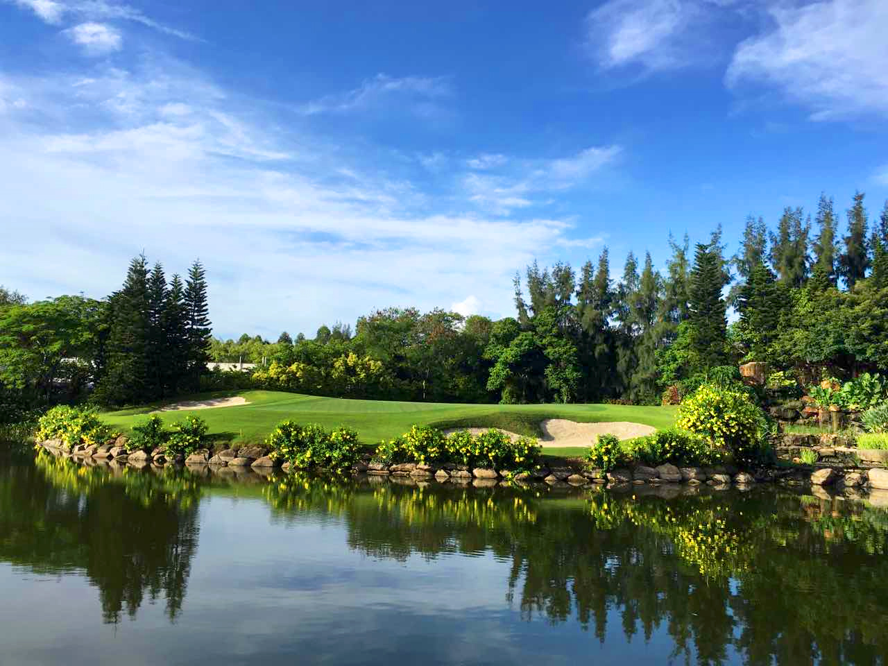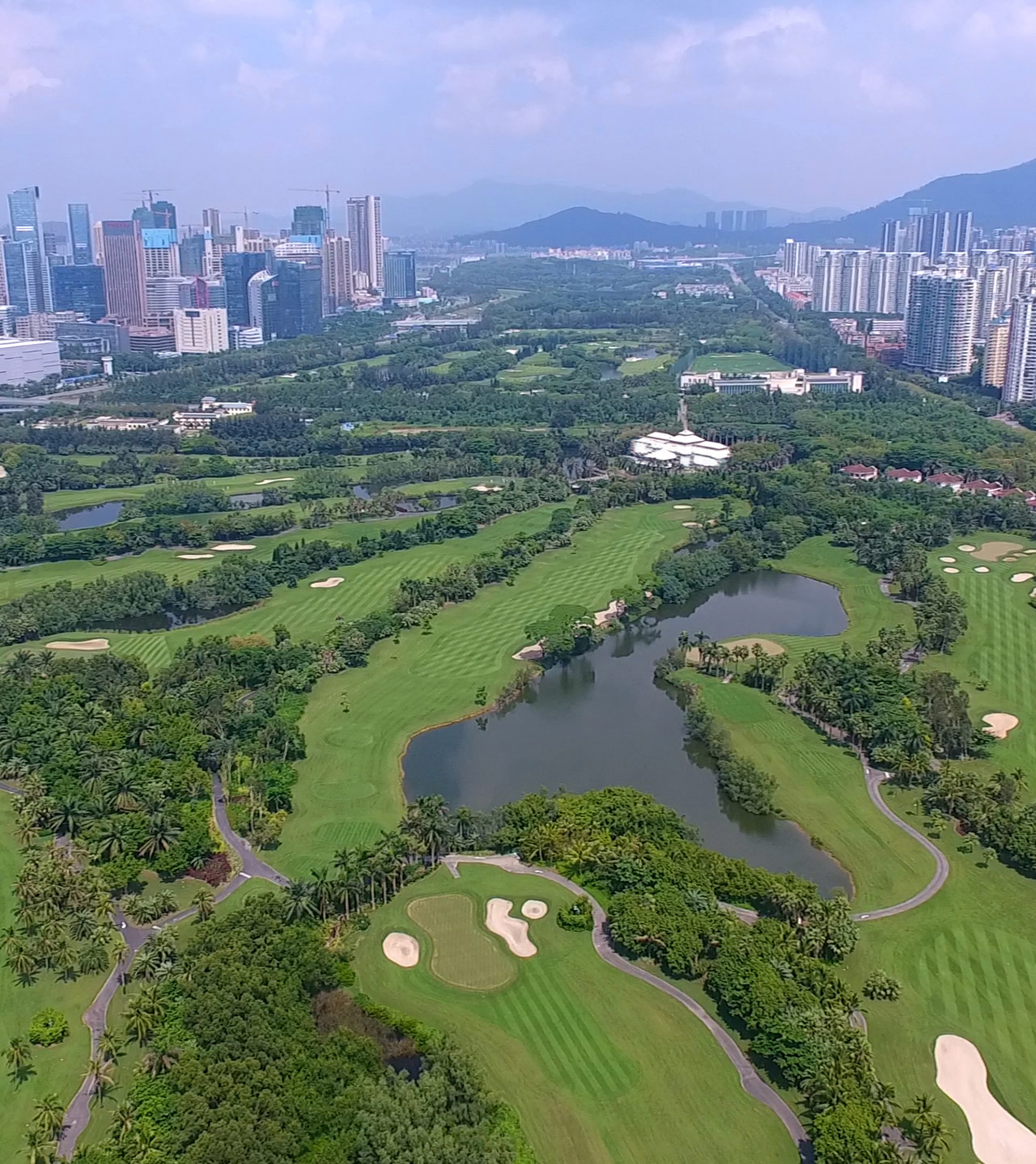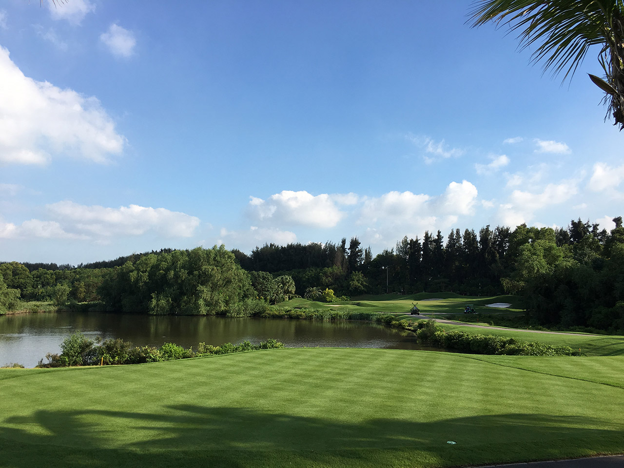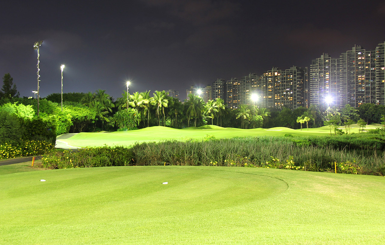 深圳沙河高尔夫球会,成立于1995年,占地面积达150万平方米,被誉为中国高尔夫界的“都市绿洲,球会精品”。纵览整个球场,最大的特色是果岭面积大而起伏变化万千,且大而多的沙坑像八爪鱼般缠绕果岭边缘,意图随时吞噬稍有偏差的小白球。沙池多是欧美海滨沙丘球场的另一个特色,而沙河球会也一样,有大量沙池分布在球道和果岭,发挥守护果岭的功能。整个球场的球道上有不少人造丘陵,既增加礼堂效果,也制造更多的打球趣味。至于大大小小的水池恰当地出现,使很多球友的警诫之心稍作松懈,结果下水的球比想像中为多。