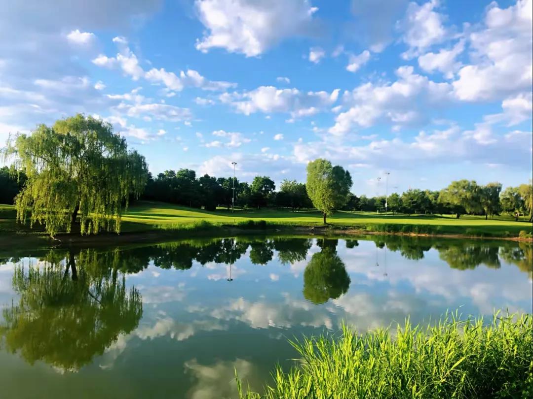 北京东方天星华普休闲健身俱乐部位于朝阳区东北,是目前唯一位于市区且配有夜间灯光照明的标准高尔夫球场。球场占地1200亩,球道长7024码,球道差点为72.5,球场设计本着“因地制宜”的原则,依平缓蜿蜒的地势勾勒出海洋性球场特征。球场最具特色的是par3的第16洞和par5的第18洞湖水围绕的岛果岭。前九洞是土地更改后,利用原高低起伏地势设计的森林性球场,仿佛置身天然丛林的大自然桃源之中。经典的整体设计突出了湖水障碍多、地势起伏大的球场特点整个球场犹如京城的一处世外桃源。鸟语花香,清风袭人,漫步其中,仿佛置身在天然丛林中,树木高低交错,满眼茵茵绿草,杨柳随风舞动,移步换景中尽享舒畅愉悦;再加上天然的水库和平缓蜿蜒的地势勾勒出碧波莲塘的唯美风景,令人沉醉不已。