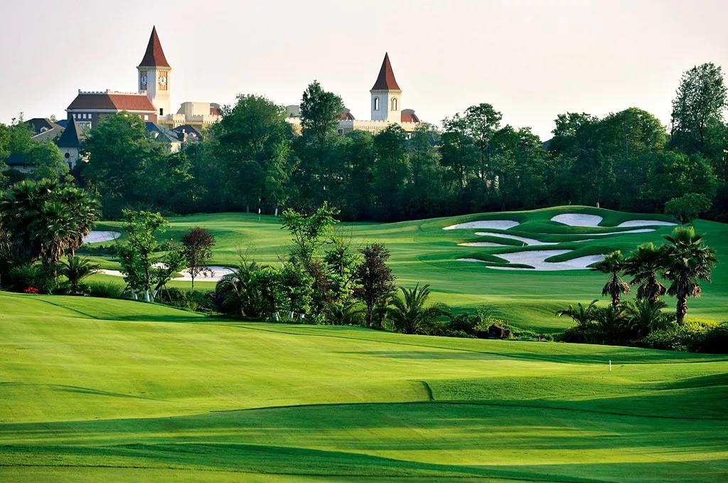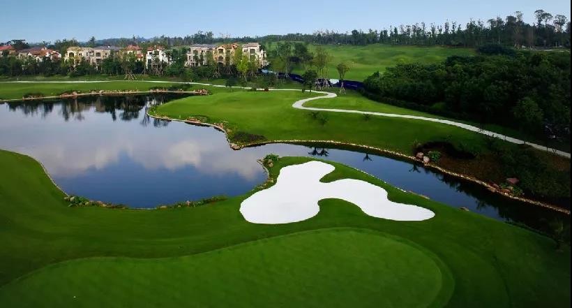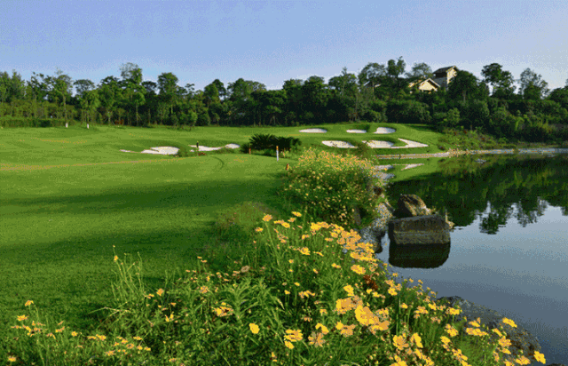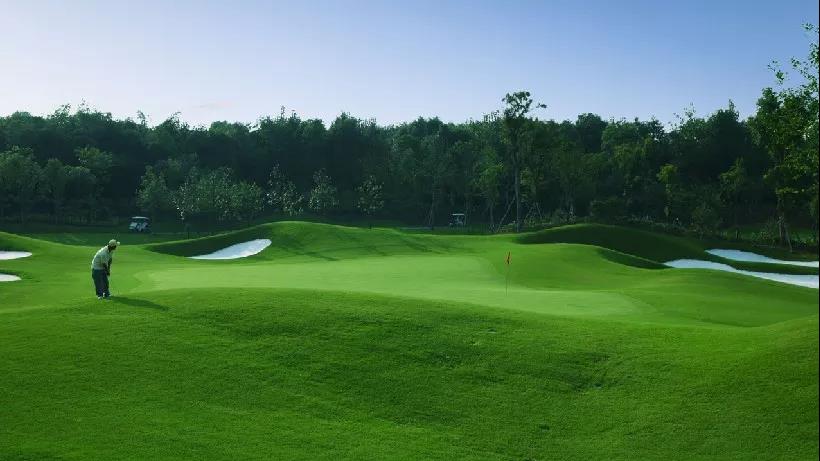 地处山水之城四川成都金堂县——四川蓝光·观岭高尔夫球会,美国专业高尔夫设计公司JMP集团充分利用了原生态地形坡地、台地的起伏变化,精心筑造出了这座18洞标准72杆国际锦标赛级的高尔夫球场。球道占地1200亩,全场7224码,以森林溪谷为基础,巧妙地将草地、湖泊、沙地和树木等自然景观融合在一起,其坐拥原野生动物园的天然植被和地貌,通过精致的景观打造,发挥山清水秀这一得天独厚的自然环境优势,彰显其独有的幽雅气质,实现与自然的和谐共生。同时也为那些不遗余力追寻完美技术的球手增加了运动挑战性。作为成都球道坡度起伏最大的球场,也是沙坑最多的球场,全场一共142个沙坑,同时也赋予了球场多色彩、多变化的景观效果,这些都给打球增加了更大的障碍性和乐趣性。