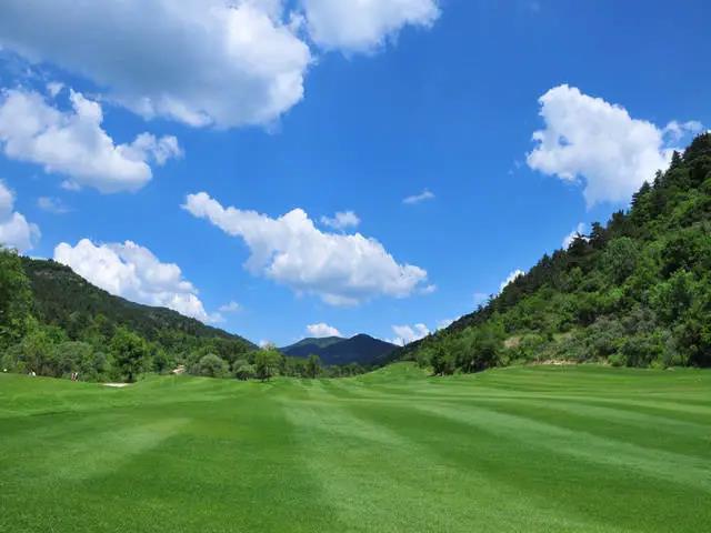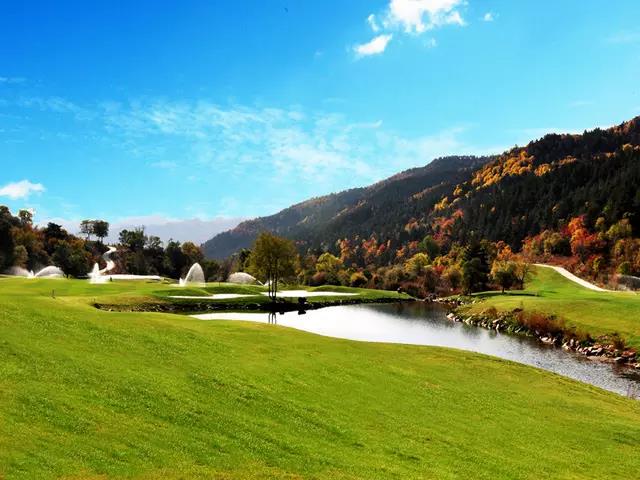 山西吕梁山国际高尔夫俱乐部位于关帝山国家原始森林公园三道川风景区,距太原市85公里,是山西省第一个国际标准高尔夫球场,是天然的山地球场。吕梁山国际高尔夫球场主要建设有:18洞高尔夫球场、高尔夫会所、高尔夫别墅、四星级酒店等。球场球道全长7286码,72杆标准杆。球场南北纵深长5公里,高低落差达160米,是国内落差最大的山地高尔夫球场。7号球道是球场中最高的一个球道,从出球台到果岭的落差达到40米,是国内球道中落差最大的景观求道之一。6号球道旁边是蝴蝶泉,夏季有成千上万只蝴蝶在此翩翩飞舞,与人嬉戏,一群飞舞的天使形成一道美丽的风景线。