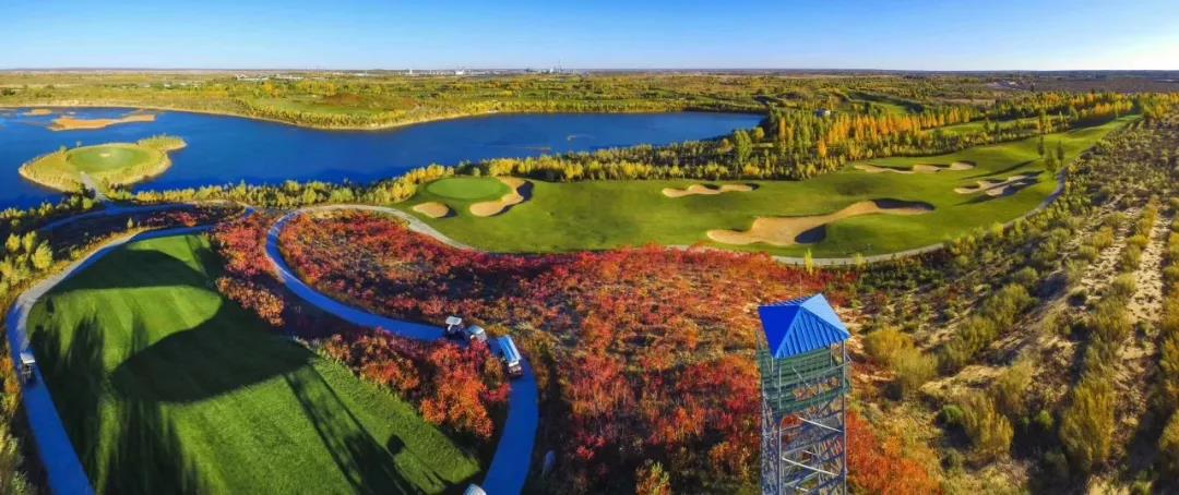 博源国际高尔夫俱乐部,位于内蒙古鄂尔多斯市乌审旗乌审召镇,由内蒙古博源控股集团有限公司全资打造,是中国第一家在沙漠中兴建的国际锦标级高尔夫球场。球场充分利用园区的工业中水,引水入沙,蓄水成湖,既解决球场的养护用水,也打造出了独一无二的沙漠高尔夫景观。沙漠绿地,浩瀚的三北防护林,是博源人暨治沙能手宝勒日岱当年治理乌审召大沙漠后的又一奇迹,曲延婉转的18洞球道,规则与自然的完美结合,形成美丽的、华而不奢的博源生态园,使景区成为 “三季有花,四季有景,气候宜人,宜游宜居”,是国内外游客理想的旅游目的地。您走进的是沙漠绿洲、世外桃源!