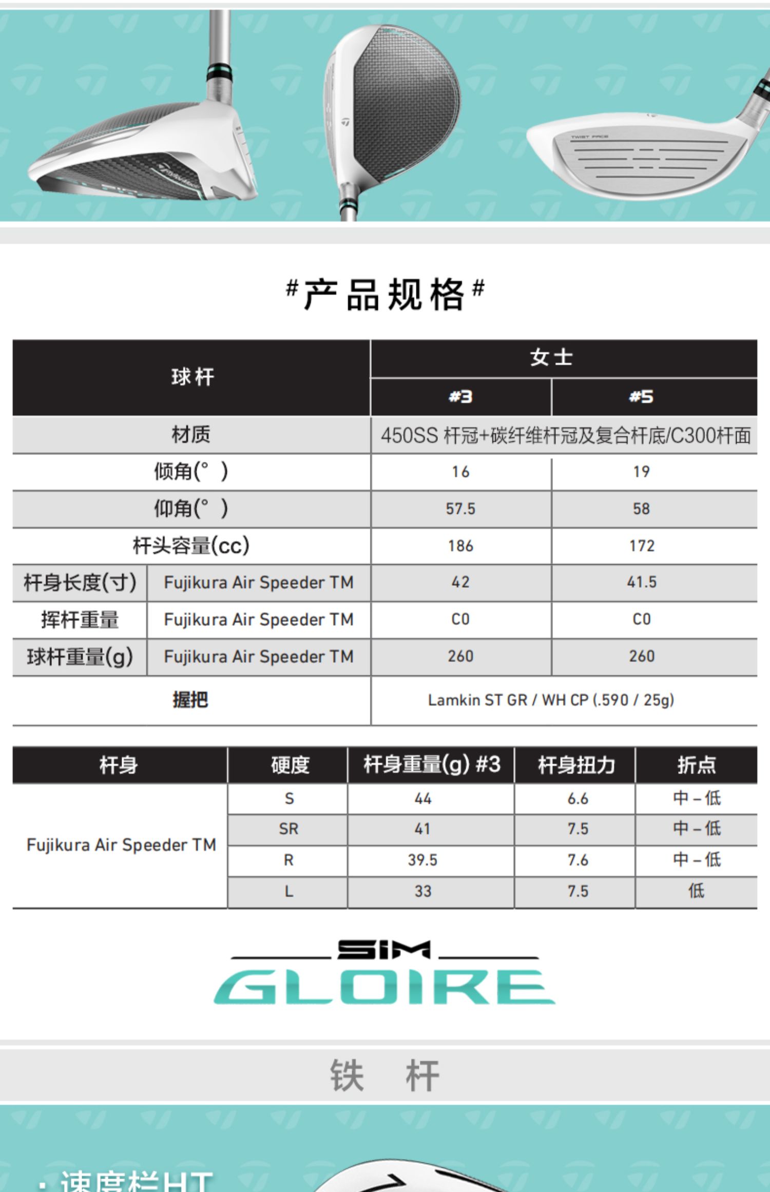 TaylorMade泰勒梅高尔夫球杆女士新款SIM GLOIRE官方正品套杆