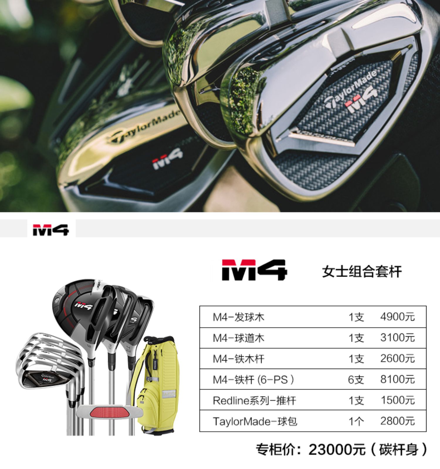 TaylorMade泰勒梅高尔夫球杆新款女士M4初学练习golf高容错套杆