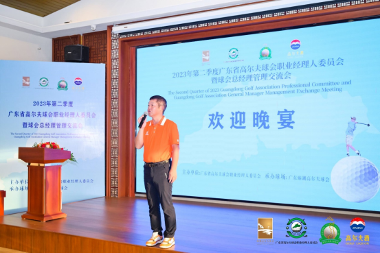 会议伊始,广东臻湖高尔夫球会总经理梁国平先生向与会总经理介绍了肇庆四会以及臻湖高尔夫球会,并代表臻湖高尔夫球会对与会总经理表示热烈的欢迎。其后,广东省高尔夫球会职业经理人委员会主任傅勇捷先生致欢迎词,并十分肯定臻湖近年草坪状态的提升。最后,冯雄主任分享了广东省高协下属委员会的发展情况:除了此前成立的职业经理人委员会、高尔夫裁判委员会、高尔夫媒体委员会之外,于2023年6月又组建了练习场馆协会。冯雄主任还分享了广东省高尔夫青少年注册队员的情况以及此前高协收集的2022年各球会打球人次。杨靖哲先生则为与会嘉宾分享了高协下属高尔夫练习场管委员会的信息,以及目前广东省内高尔夫练习场馆的发展情况。