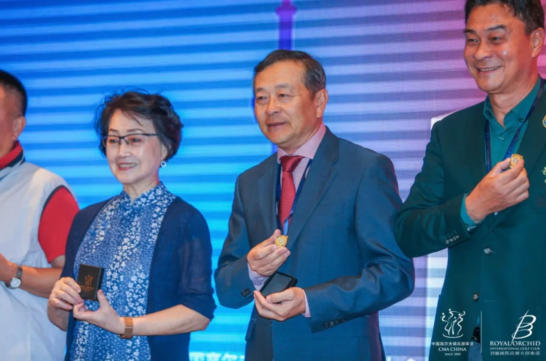 高尔夫杂志出版人、九州盛世文化传媒公司董事长王志刚先生为累计参会达20届的嘉宾:吴卫群、崔志强、李仁臣、李明英颁发纪念章。