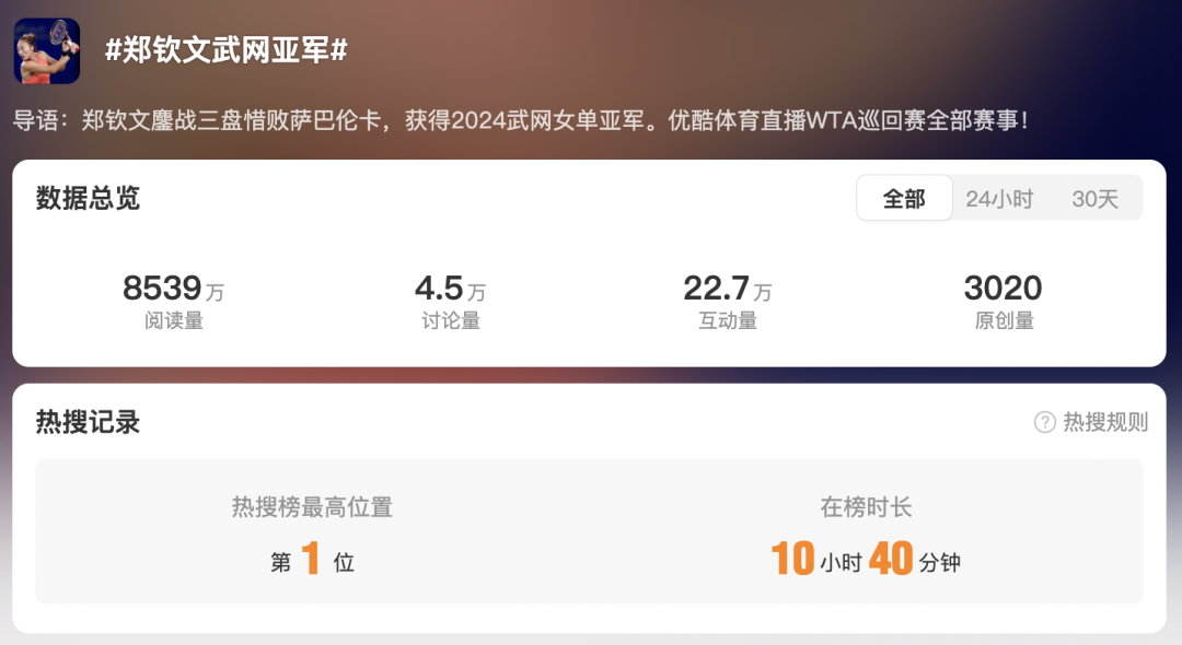 当看到郑钦文在武网决赛中的收视率在同时间段的央视直播中稳居第一时,你会更直观地感受到,本土球星为球迷营造的归属感、明星效应以及票房号召力。座无虚席的场馆,以及在热搜榜上超过10个小时的第一名,无不展示着国内“网球热”的迅速蔓延。 无独有偶,同样作为当今在全球高度商业化和职业化的运动,如今高尔夫在国内也展现出类似“球星效应”。 虽然郑钦文武网惜败屈居亚军,但在家门口举行的顶级高尔夫赛场上,殷若宁凭借刚到手的2024别克LPGA锦标赛冠军奖杯,让自己成为七年来首位在主场赢得LPGA赛事的中国冠军。这也是继2014年华彬LPGA精英赛 (北京) 、2017年蓝湾大师赛 (海南) 的冯珊珊之后,中国大陆球员历史上第3次,在“家门口”问鼎LPGA赛事冠军。在这一突破性成绩的推动下,当晚央视《体育新闻》以头条报道了新任中国高尔夫“一姐”上海夺冠的消息。 对于在中国苦心经营十余载的高尔夫赛事和产业来说,这些都极有可能带来丰厚的回报。