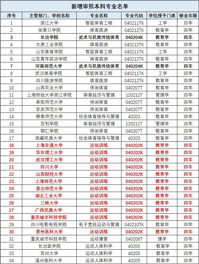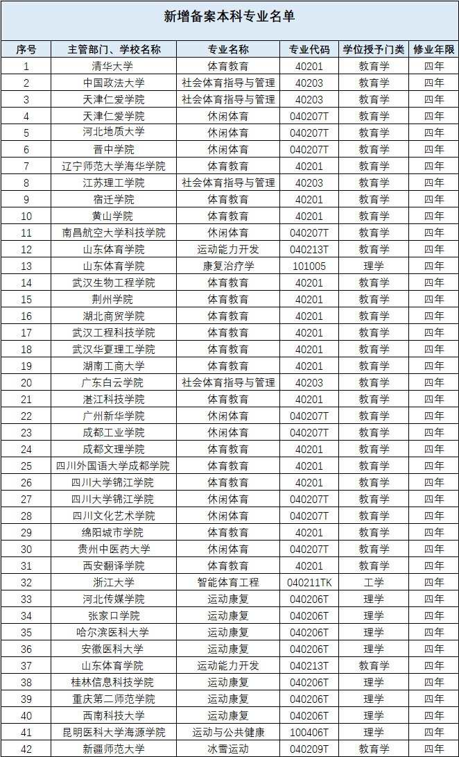关于2022年高校体育学本科专业备案和新增审批结果,详情如下: