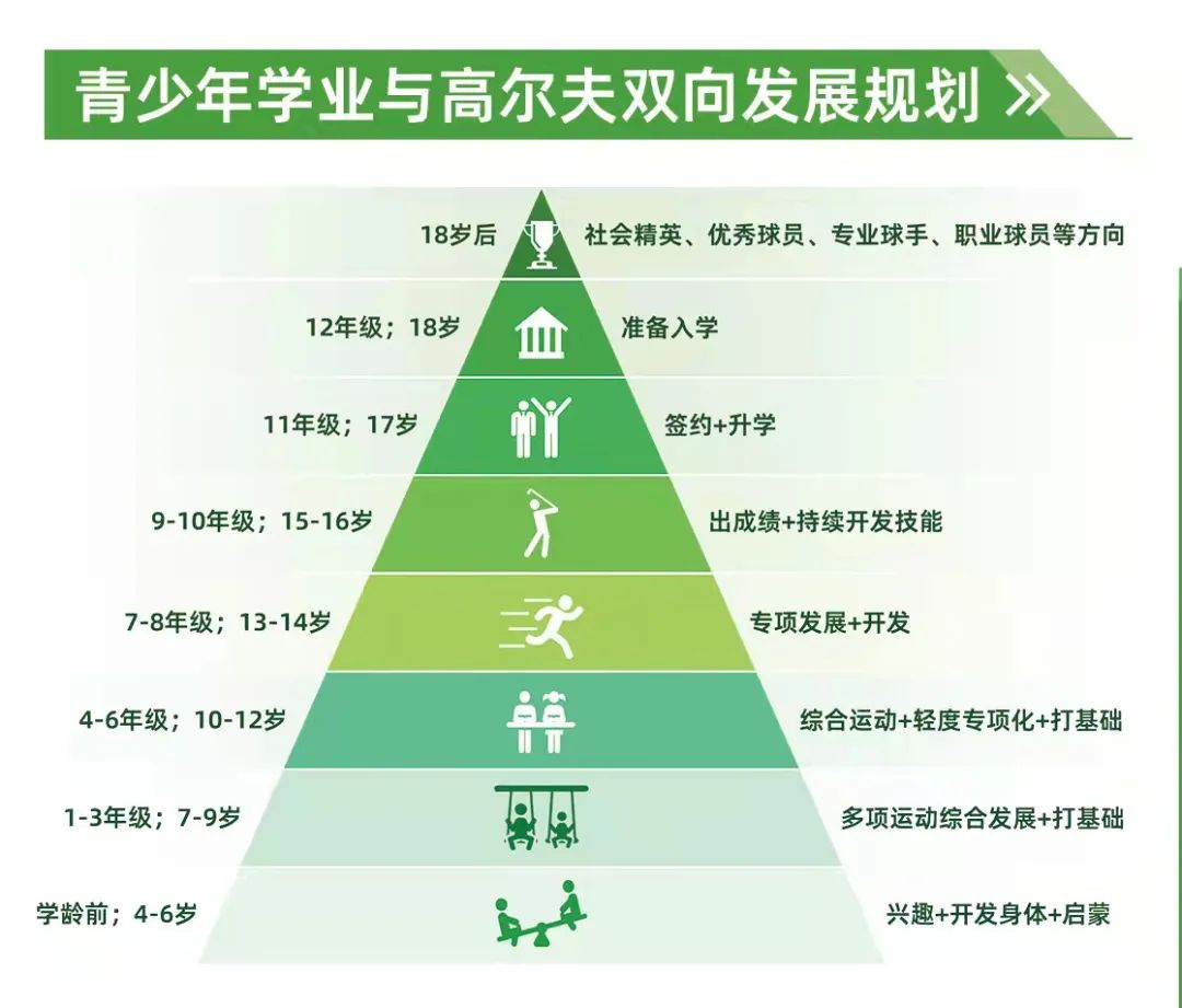 部分家长希望孩子打高尔夫尽早出成绩,可以理解,但“越早开的花,往往越早凋谢”,根据青少年的生长发育特点和运动训练规律去规划孩子的学业与高尔夫,才能真正走得长久。