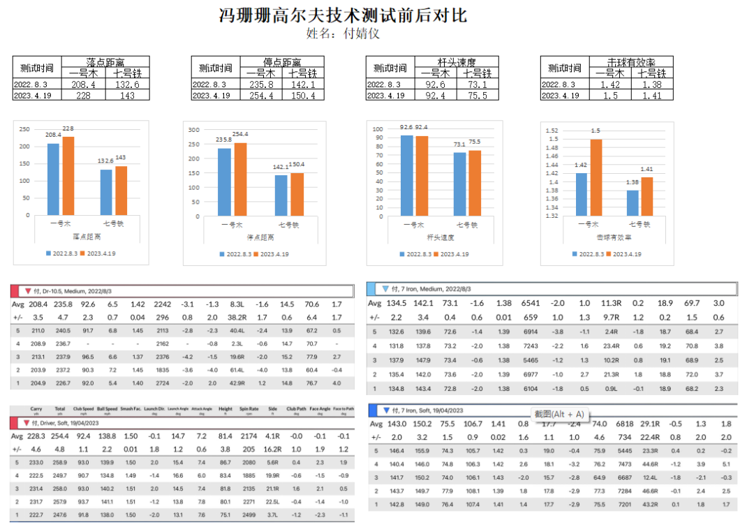 冯珊珊中国测试系统根据不同巡回赛的国家地理气候因素、世界技术发展趋向,从竞技能力、运动表现、身体功能三大板块全面筛查高尔夫运动员在竞技比赛中与目标竞技舞台的匹配程度,为日常训练提供准确专业的指导方向。