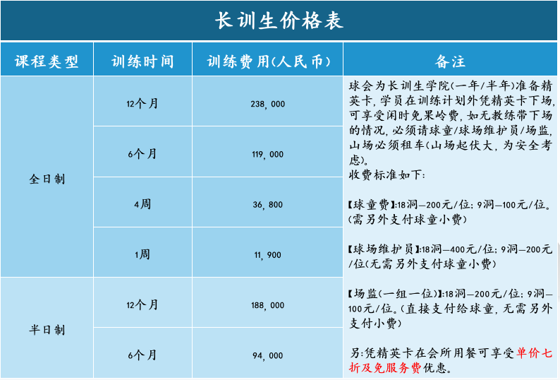 学院以培养高尔夫人才为目标,招生有全日制训练、半读半训两个类别。全日制计划旨在为青少年球员、业余球员和职业球员提供集挥杆技巧、球场实战技巧、专项体能训练、高尔夫心理、高尔夫英语于一体的系统化全年训练,帮助学员挖掘潜能、精进技术,全方位提高竞技水平,使他们在比赛中取得更好的成绩。半读半训计划,则是融合了文化课学习、高尔夫系统训练于一体,保证训练时间并帮助学员做好赛前准备,助力其取得出色的成绩。目前,冯珊珊高尔夫-南沙学院,已培养出殷小雯、任玥、白翔匀、何陈昊、方博、张梓洪等多位优秀学员!