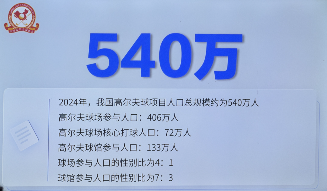 10月14日,中国高尔夫球协会在中国女子公开赛上发布《中国高尔夫球运动产业报告》(以下简称产业报告)核心数据。《产业报告》是新中国高尔夫球运动发展四十年来,首次面向全行业开展产业报告的系统性调查与专业化编制工作。报告由浙江大学周丽君教授团队编写,这是中高协首次正式发布的行业数据,展示了当前中国高尔夫球运动行业的基本情况。2024年,我国高尔夫球项目人口总规模约为540万人,其中高尔夫球场参与人口约406万人,核心打球人口约72万人;高尔夫球馆参与人口133万人。球场参与人口的男女性别比为4:1,球馆参与人口的男女性别比为7:3。越来越多的女性和青少年通过球馆接触、参与高尔夫球运动。近年来,参与高尔夫球运动的青少年日益增长。2018-2024年,全国青少年高尔夫球员累计注册141290人。其中2024年新增注册15548人,较2023年增长12%。截至2025年9月底,全国青少年积分榜活跃在榜人数共计2778人,青少年竞赛差点人数共计2239人。截至2025年6月5日,全国营业的高尔夫球场数量为335座。其中,84% 的球场是面向所有人群开放的公共和半公共球场。球场数量排名前五的省市为广东、北京、江苏、海南和山东。截至2024年底,中国高尔夫球协会三家合作伙伴(如歌、高尔夫尊、衡泰信)运营的室内高尔夫球馆共计1859家。2025年,全国球馆总数已超过2000家。年度打球总轮次2036万,户外1326万轮(2023年)2023年,我国户外高尔夫球场和室内球馆打球总轮次为2036万轮,其中户外高尔夫球打球总轮次为1326万轮,较2021年增长21%。全国球场打球总轮次排名前五的省市为广东、海南、北京、浙江和上海。2023年,我国每个球场打球的平均轮次为3.97万轮次。其中,广东省的平均轮次为4.48万次,意味着单个球场平均一天有123位爱好者打了一轮球。2023年,全国室内球馆打球总轮次为710万轮,2024年球馆打球总轮次超过1007万轮,相比2021年(461万轮)涨幅达118%。2023年,在户外高尔夫球场打一轮球的平均为531元。如果按照打一轮球的时长为4.5小时,那么打高尔夫球每小时的费用约为118元。其中,北上广深打一轮球的平均费用约为753元。中西部和东北地区打一轮球的价格约为512元。2023年我国高尔夫运动球产业,包括球场和球馆的经济收入,赛事和培训的经济规模超过151.86亿元。装备制造业未计算。每座高尔夫球场平均提供198个直接就业岗位。中国高尔夫球协会秘书长韦庆峰对数据进行了解读。他认为,尽管面临场地不足的现状,但中国高尔夫球运动行业依然在努力发展,逐步找回体育运动的本质,从服务小众转型为服务大众。当前我国高尔夫球产业主要面临的问题包括:场地设施服务供给、政策环境适应、运动人才培养等方面发展方式僵化落后;社会形象负面;场地数量不足导致的打球贵、学球贵、运动员训练缺乏基本条件,提供公共服务能力较差等问题。同时,在建成体育强国和健康中国的时代背景下,高尔夫球运动面临新的发展机遇。韦庆峰表示,要鼓励高尔夫球场地设施进一步向公众开放,更好地满足人民群众多样休闲健身需求;逐步完善新型举国体制,提升高尔夫球竞技实力和职业化发展;丰富高尔夫球赛事活动,与多元主体合作打造“在地化”赛事活动IP, 构建完整赛事活动体系;充分发挥高尔夫球场在荒山治理、矿区修复等方面具有独特优势,实现环境治理和财政减负双赢;把握科技创新机遇,发展以模拟器为核心设备的室内球馆业,丰富高尔夫球参与场景;梳理、提炼中国高尔夫球运动文化价值谱系,加快高尔夫球运动的中国化转变进程,为产业发展赋能文化动力。本报告在编写过程中,得到了来自全国各省(市、区)高尔夫球协会、行业专家、企业代表的帮助,在问卷分发、实地调研、访谈、座谈、案例等方面给予编写组重要支持。特别感谢浙江杭州西湖国际高尔夫乡村俱乐部、浙江大学高尔夫球基金会、青海互助天佑德青稞酒股份公司、深圳市衡泰信科技有限公司等协会合作伙伴的大力支持。《中国高尔夫球运动产业报告》全文将于今年底正式发布,敬请期待。