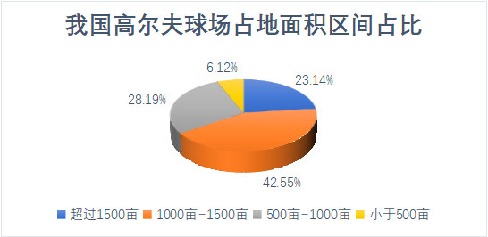一座18洞高尔夫标准球场占地50-100公顷,包含发球台、球道、果岭及障碍区。在我国,面积在1500亩(100公顷)之下的球场约占77%,约43%的球场面积处于1000亩-1500亩之间(67-100公顷)。