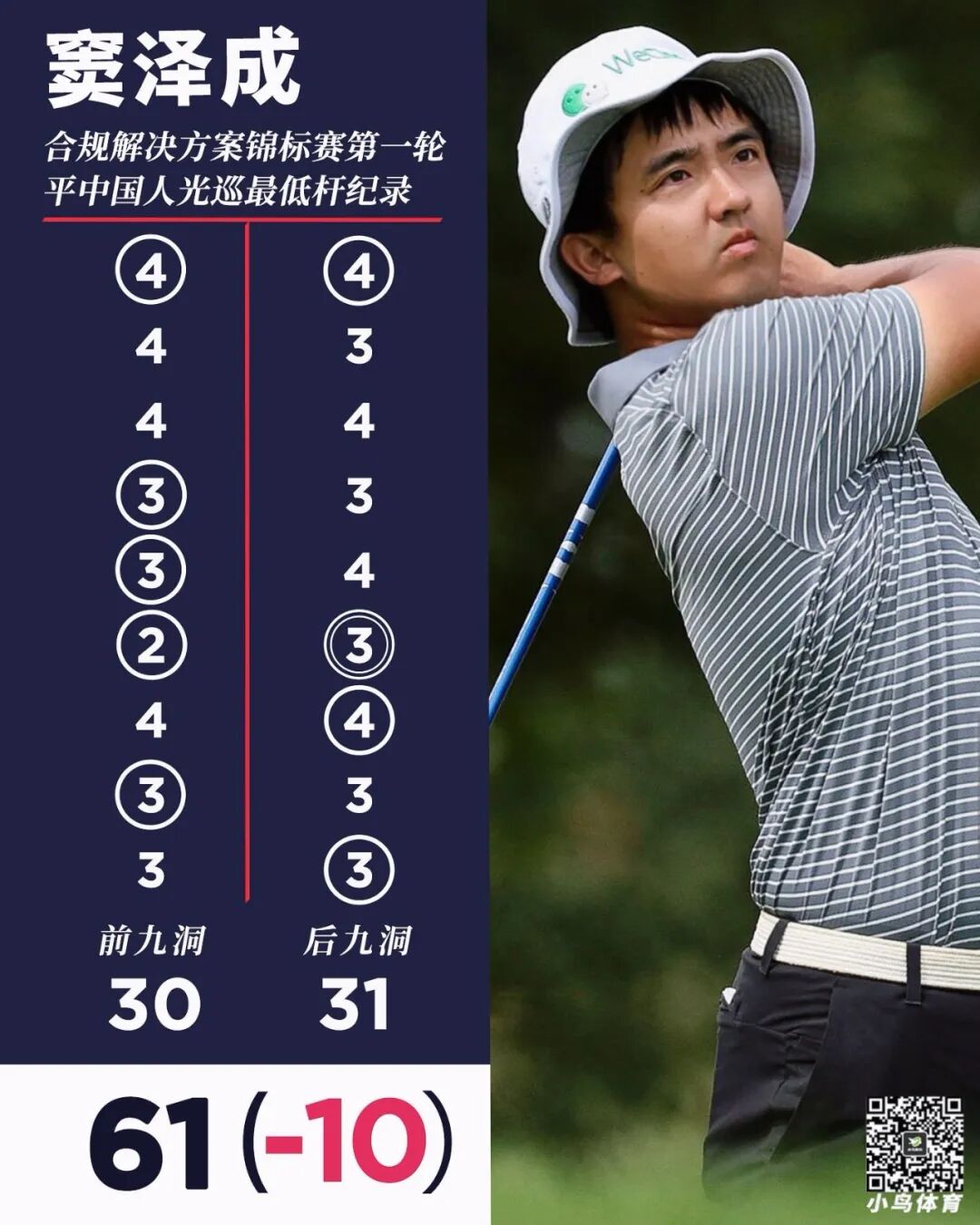 窦泽成光巡季后赛单轮狂飙61杆