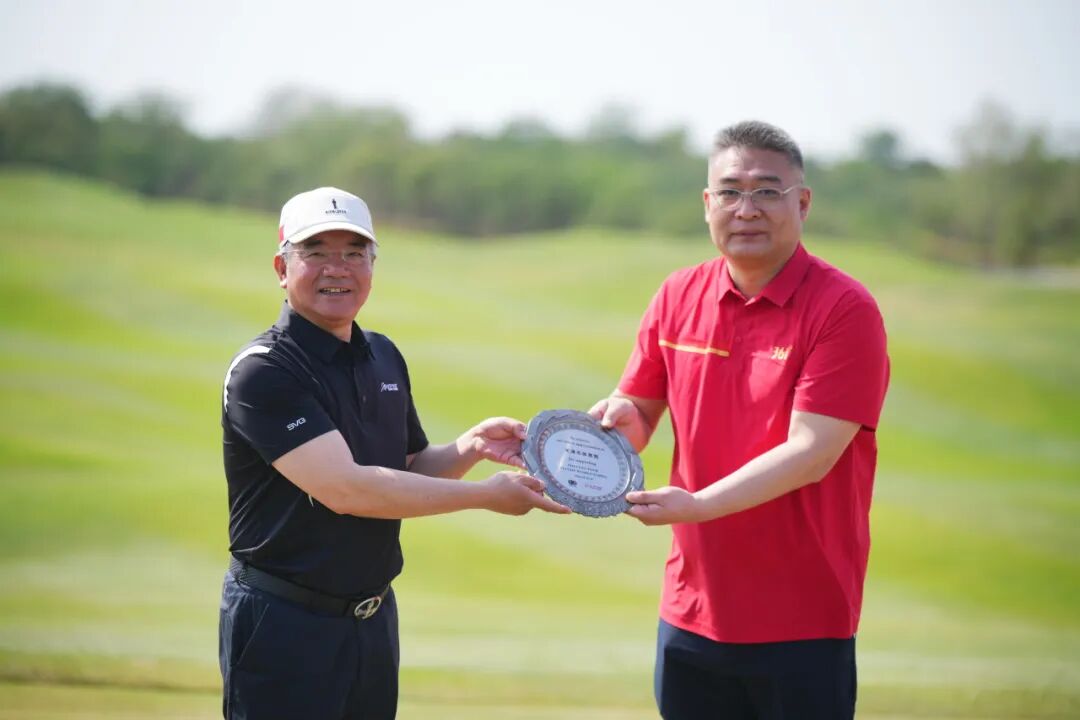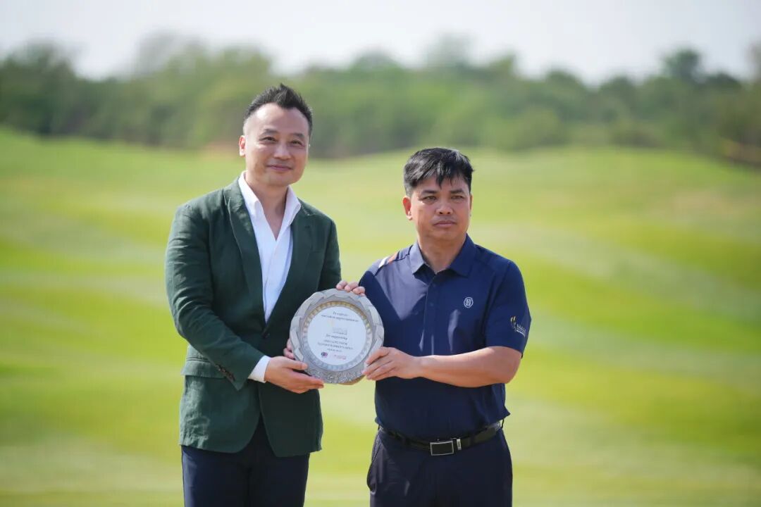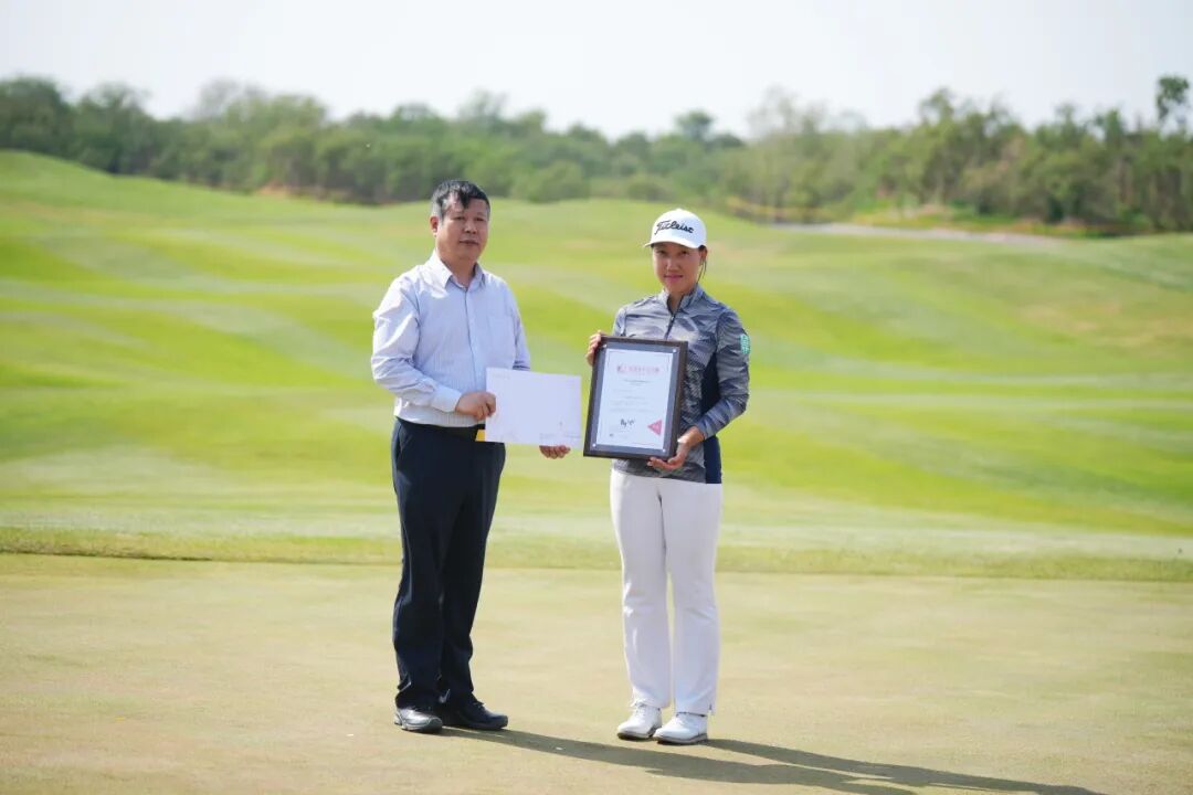 天津市政建设集团党委副书记、工会主席王冬肃为球员吴祖欣颁发最佳业余鼓励奖——天津松江团泊湖高尔夫球会全年免费打球权益(含下场、练习场和切杆果岭)