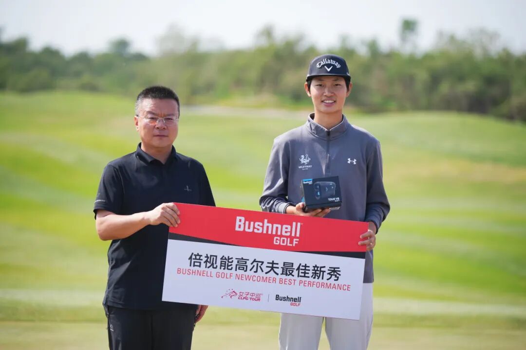 天津市静海区团泊镇镇长刘洪利为球员许赢颁发最佳新秀球员证书及副奖倍视能高尔夫TOUR V6 SHIFT测距仪一台