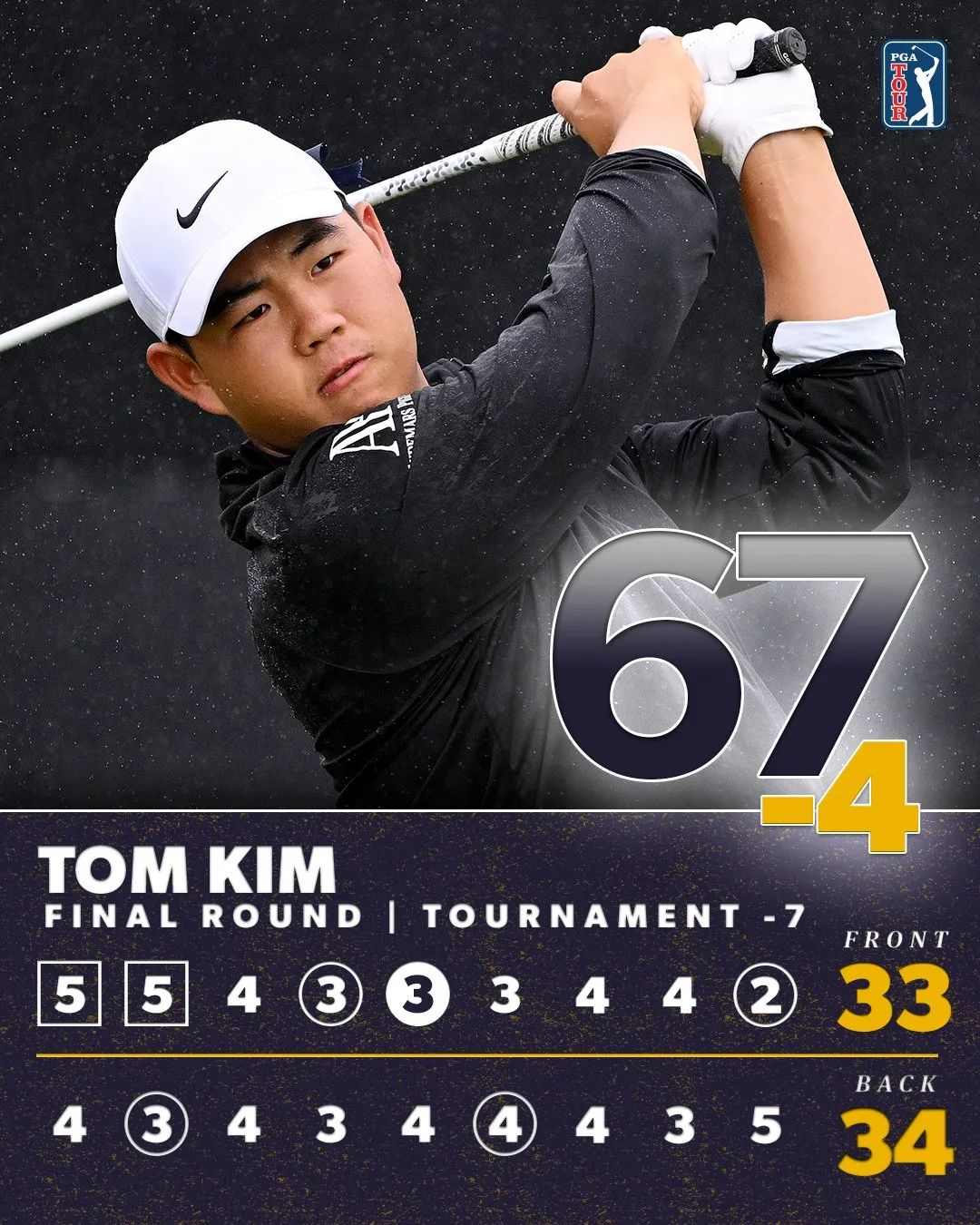 金柱亨赛事期间在租住的房子门口扭伤脚踝,今天在五号洞,第二杆打到13英尺,射下老鹰,然后抓到3只10英尺小鸟。