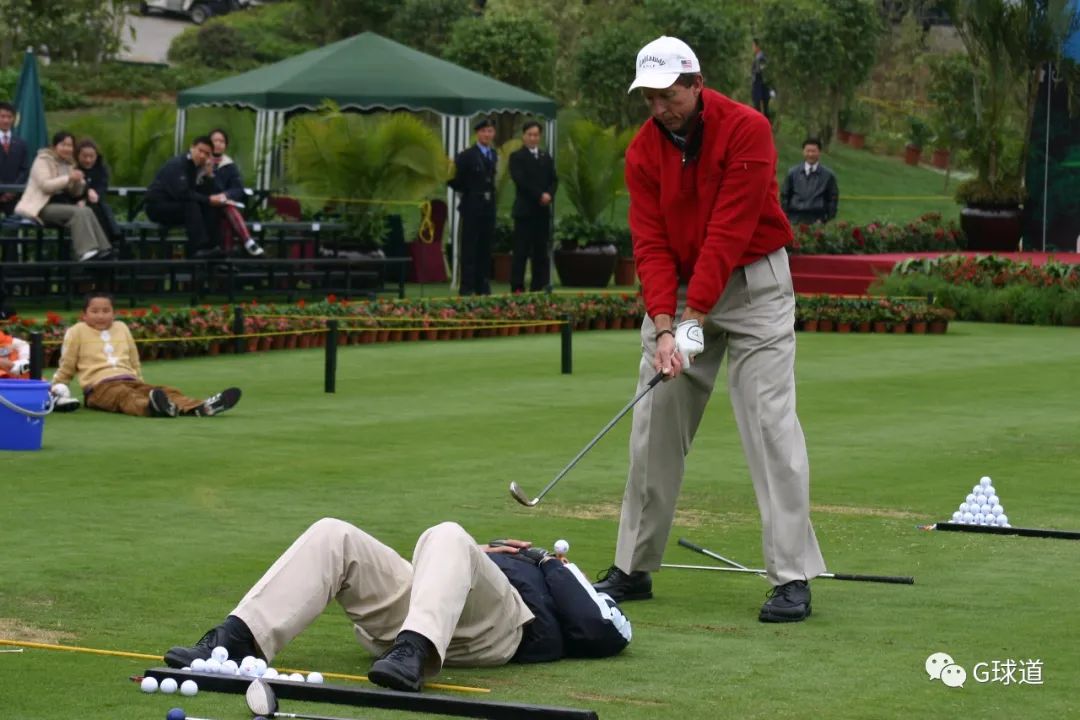 2007年12月30日,南海桃园球会,中国业余公开赛。张连伟和冯珊珊现身主办方设置的赛前教学环节,谁没年轻过,谁又没瘦过?