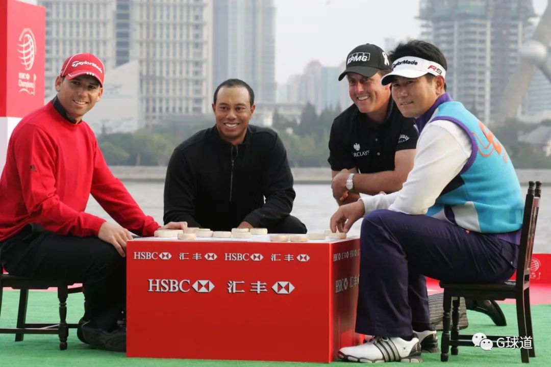 2009年11月3日,伍兹等球星在上海汇丰冠军赛开幕式上做秀下象棋。自2005年诞生以来,每届上海汇丰冠军赛的开球仪式都有中国元素:舞太极剑、敲锣、打鼓、舞龙舞狮、下象棋、写毛笔字、唐装灯笼秀、京剧秀.....赛事去年因疫情停办,今年也不乐观,负责开幕式文案的工作人员暂时不用绞尽脑汁苦想新的中国元素了。