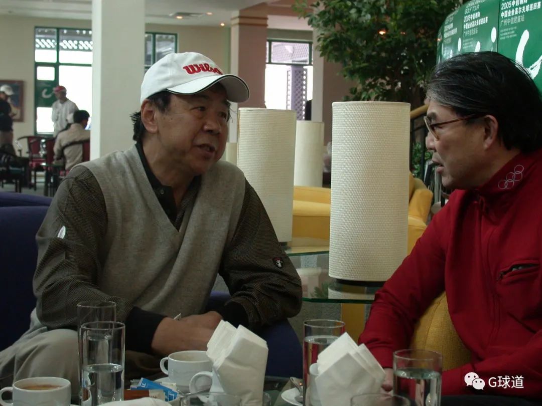 2005年1月11日,中国业余高尔夫球巡回赛广州站,两位中国高坛举足轻重的人物——袁伟民和霍震霆在南沙球会的会所里交谈。