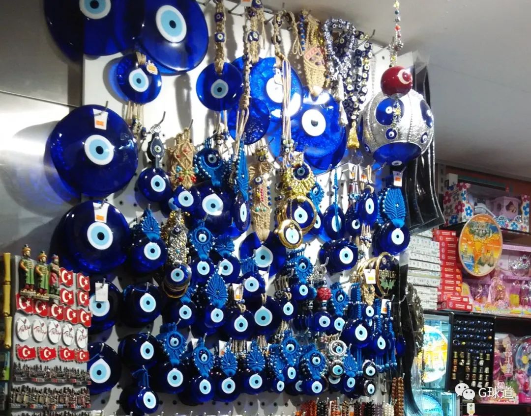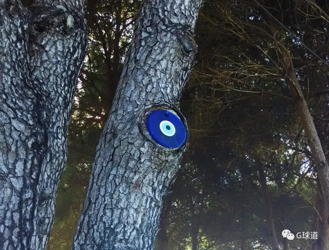 球场的大树上,挂着土耳其人最喜爱的护身符和吉祥物——蓝眼睛,也叫“恶魔之眼”、“辟邪珠”。
