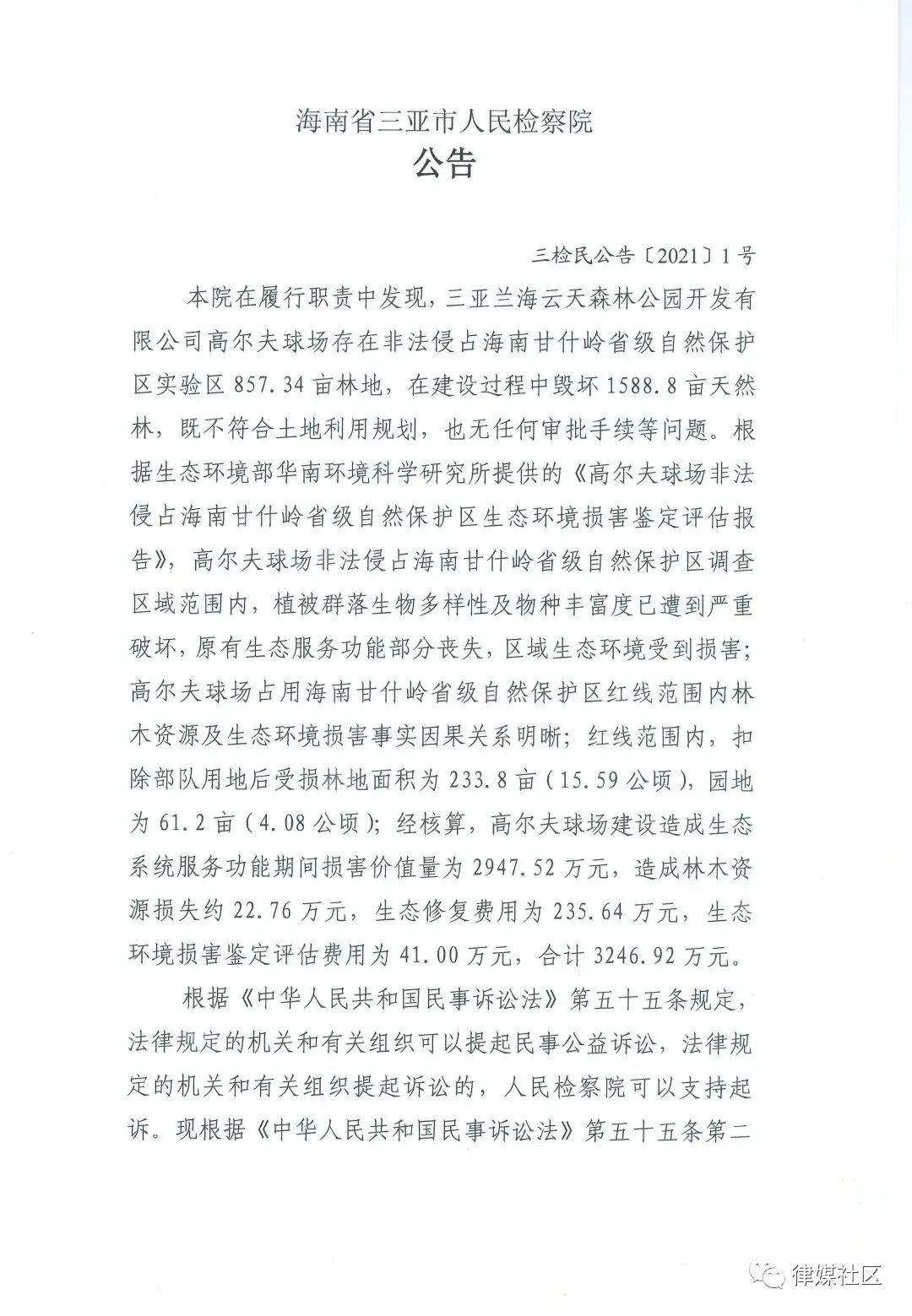 关注高尔夫诉讼(1):三亚一高尔夫项目破坏生态环境案