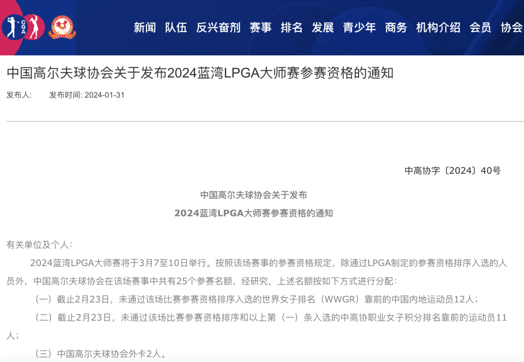 但更重要的是,随着中国女子军团在2024年LPGA井喷式崛起,拥有了创历史的12名全卡或半卡会员。整体实力和人数的提升,让不需要“等位”通过中高协选拔的东道主球员数量,也将创下史上新高!