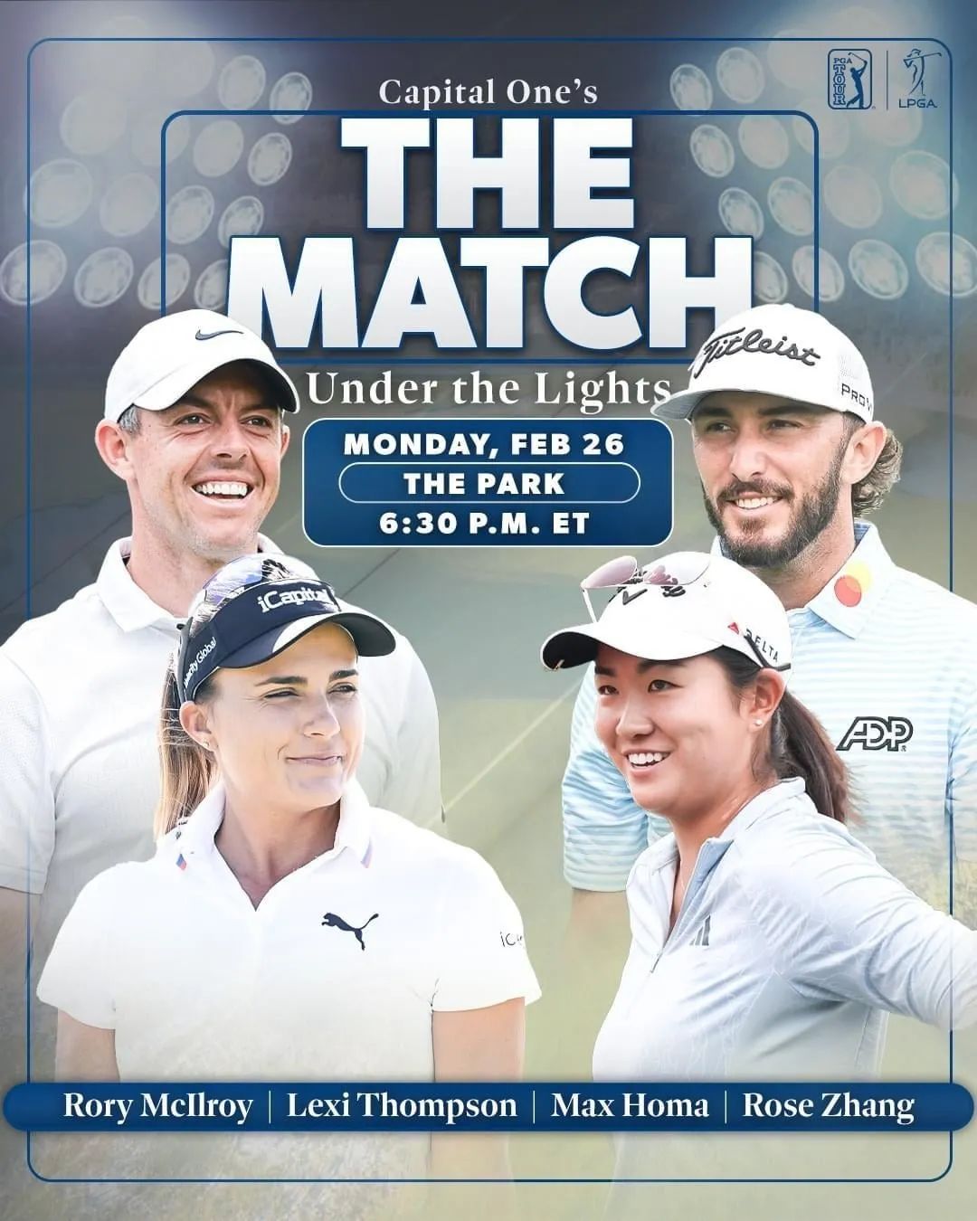 北京时间今天凌晨,慈善明星赛性质的“世纪之战 (The Match)”宣布第9季赛事将于下月举行,并公布了参赛球员的名单——两位美巡赛的世界前十名将罗里·麦克罗伊、马克斯·霍马 (Max Homa) ,将与两位来自于LPGA巡回赛的冠军球员张斯洋和莱克西·汤普森 (Lexi Thompson) 同场竞技,在美国东部当地时间2月26日18:30 (北京时间2月27日7:30) 展开较量。