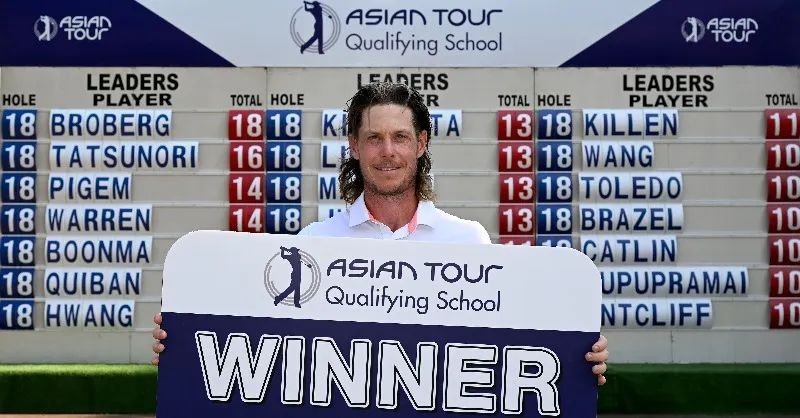曾在2015年上海美兰湖击败帕特里克·瑞德,赢得BMW大师赛冠军的瑞典人克里斯托弗·布隆伯格 (Kristoffer Broberg) ,依靠决赛轮技惊全场单轮3只老鹰的66杆 (-6) ,最终以总成绩-18问鼎资格考试头名”状元“。而在4位并列第35名球员中进行的“四抢一”加洞赛中,日本球员池村宽世 (Tomoyo Ikemura) 在第4个加洞成功突围,幸运拿走了最后一张亚巡“类别16”会员资格卡。