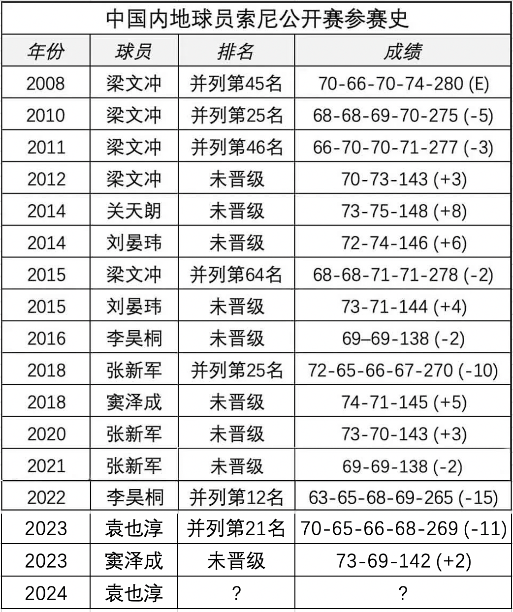 前两轮技术统计,袁也淳平均开球距离315.6码,高居全场第6;攻果岭得分3.623,以及标准杆上果岭后的平均仅用了1.63推,同样高居第6,显示了中国一哥相当全面的顶流技术水准。“休赛期在短杆和推杆方面,我付出了很多的时间。在体能上和身体状况方面,也有新的团队成员来帮助我。”赛后他说。索尼公开赛不仅是绝大多数美巡球员的新年首秀,也是一场对中国球员“相当友好”的美巡赛,不仅曾十余年为中国人提供参赛外卡,李昊桐 (T12/2022)、张新军 (T25/2018)、梁文冲 (T25/2010) 还都曾在这里斩获美巡前25名佳绩,袁也淳本人也曾在去年的比赛中获得了并列第21名。