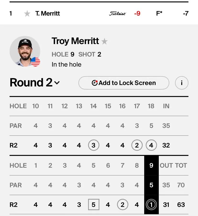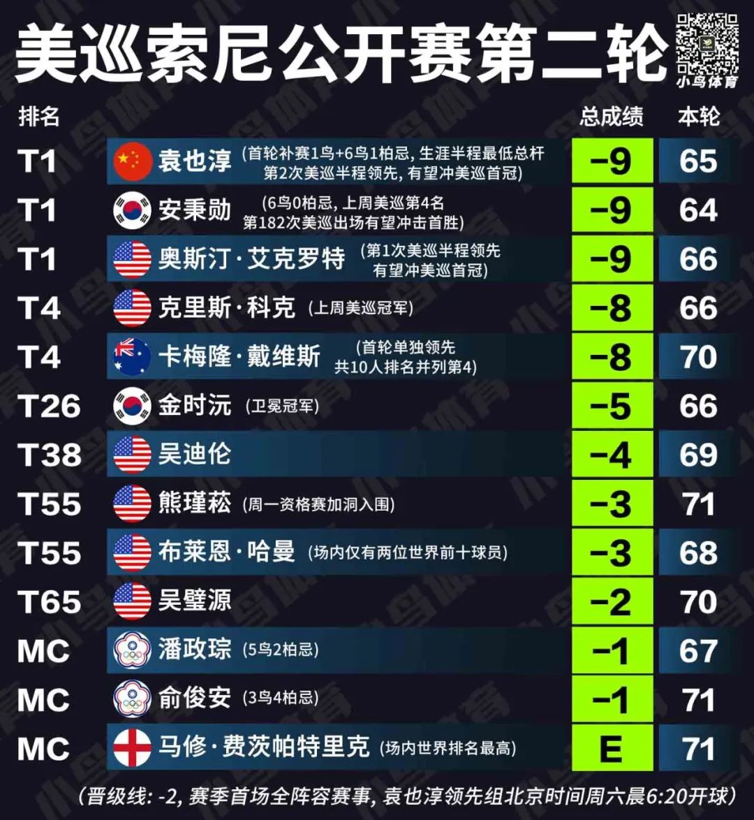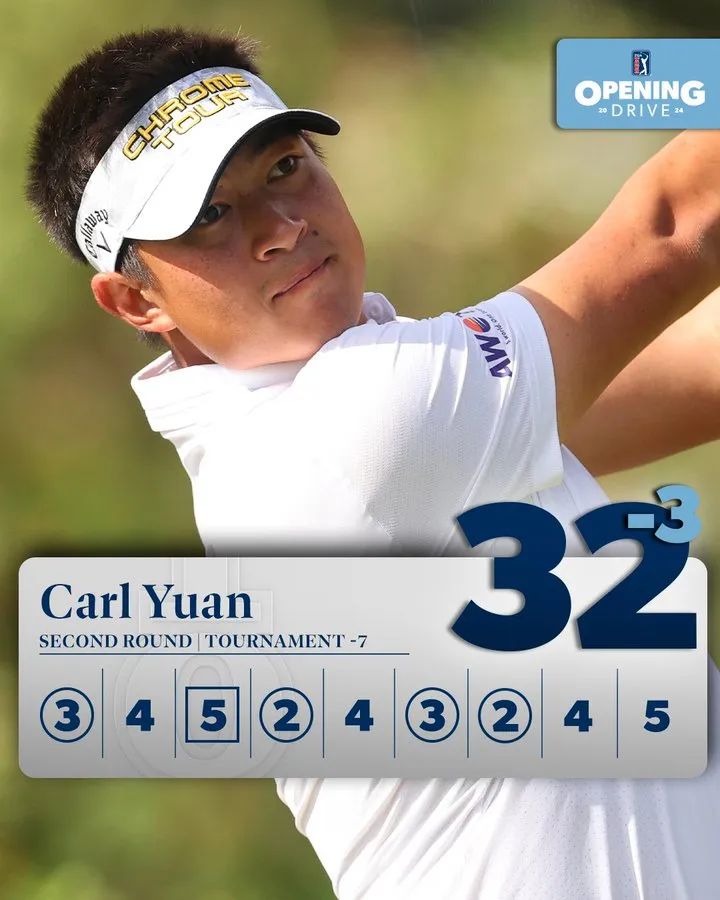 事实证明,这显然是美巡记分系统出现了“乌龙”,梅里特的成绩只是小鸟,袁也淳也得以“夺回”榜首。不过中国一哥没有受到场外风波丝毫影响,而是开启了“稳健模式”,后九没有出现一记柏忌,反而洞洞制造出了抓鸟良机,并在13号洞和最后一洞再下两城,最终总成绩推进到-9,与韩国华裔名将安秉勋、与自己同为2022年光巡毕业生的美国人奥斯汀·艾克罗特 (Austin Eckroat) 一道并列36洞领先!