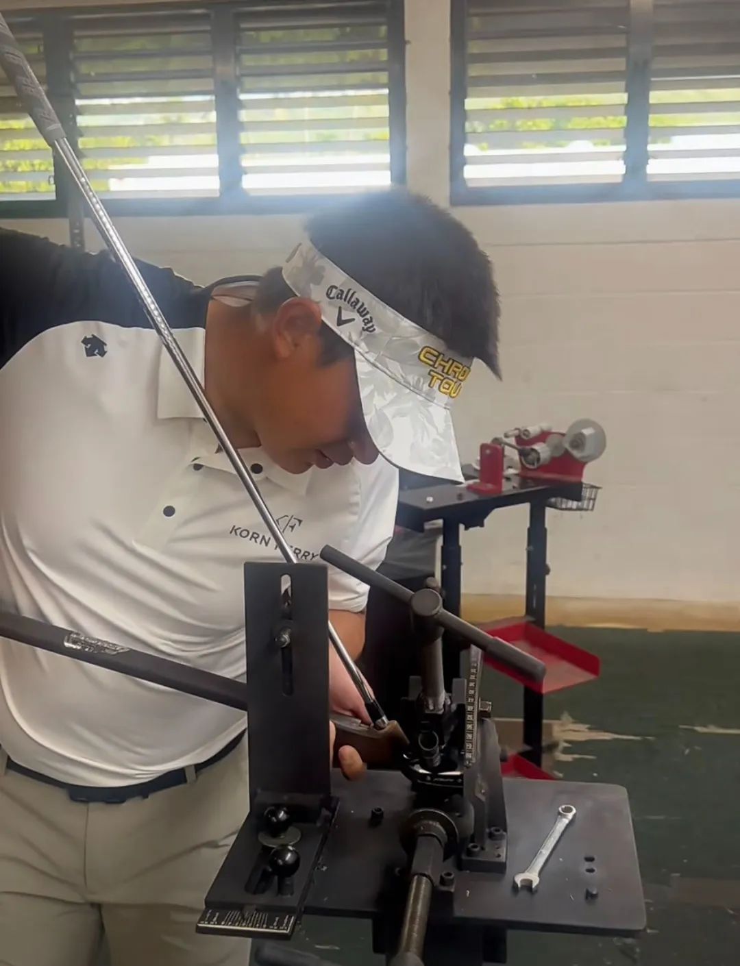 补赛的9号洞,他顺利抓下了小鸟,以66杆 (-4) 完成首轮。接下来并没有回到会所休息,练习场打了几杆不太满意后,他居然来到了工坊调试起了球杆。回到赛场的袁也淳,随即开始了“火力全开”模式,前九洞就砍下4只小鸟,一举登上了美巡赛单独领先!