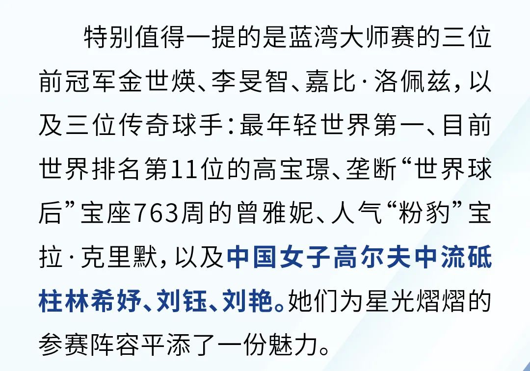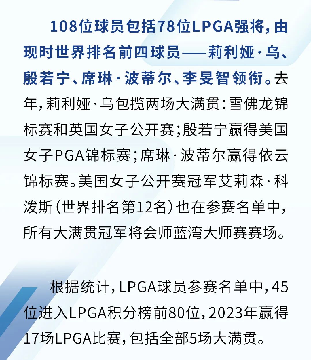 世界前四+全部大满贯冠军+实力新星,LPGA-蓝湾大师赛阵容出炉