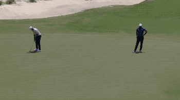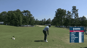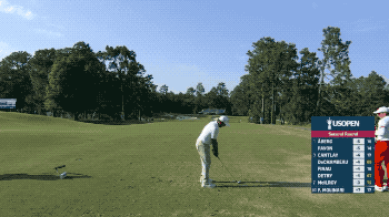几个小时之后,同样是9号洞,前汇丰冠军赛冠军、意大利名将弗朗切斯科·莫利纳里 (Francesco Molinari) 也是使用7号铁,将球打到果岭前方之后,眼瞅着小球缓缓滚进洞杯!更为神奇的是,这是莫利纳里当天的最后一洞,开球之前,他的成绩刚好为+7,高于晋级线两杆!这位莱德杯功勋名将和英国公开赛得主眼看就要在美国公开赛上连续第三年无缘晋级,然后就发生了上文的逆天一幕。