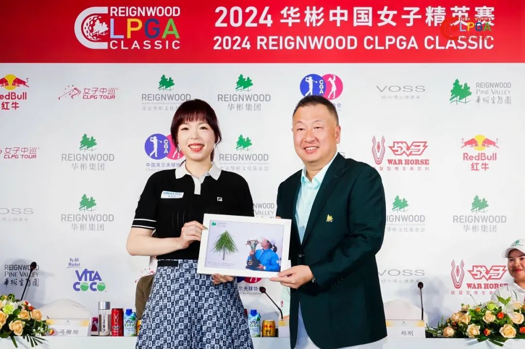 发布会上,华彬集团执行总裁郑刚还宣布了“冠军树”传统的延续。沿袭华彬以往赛事种植“冠军树”的传统,本周的赛事冠军不仅将捧起“绿色女神杯”,也将拥有属于自己的冠军树。恰逢发布会现场,2013华彬LPGA中国精英赛冠军——冯珊珊到来,郑刚还为她准备了一份特殊的礼物。