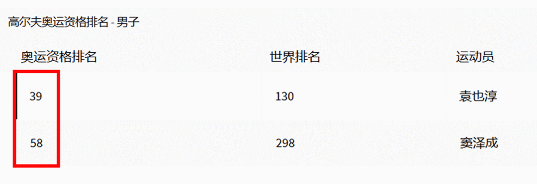 但每个国家或地区最多只能有4位球员参加奥运会。例如,当前世界高尔夫排名前15的选手中有9位来自美国,那么只有排名最靠前的四位美国选手能入选奥运会。