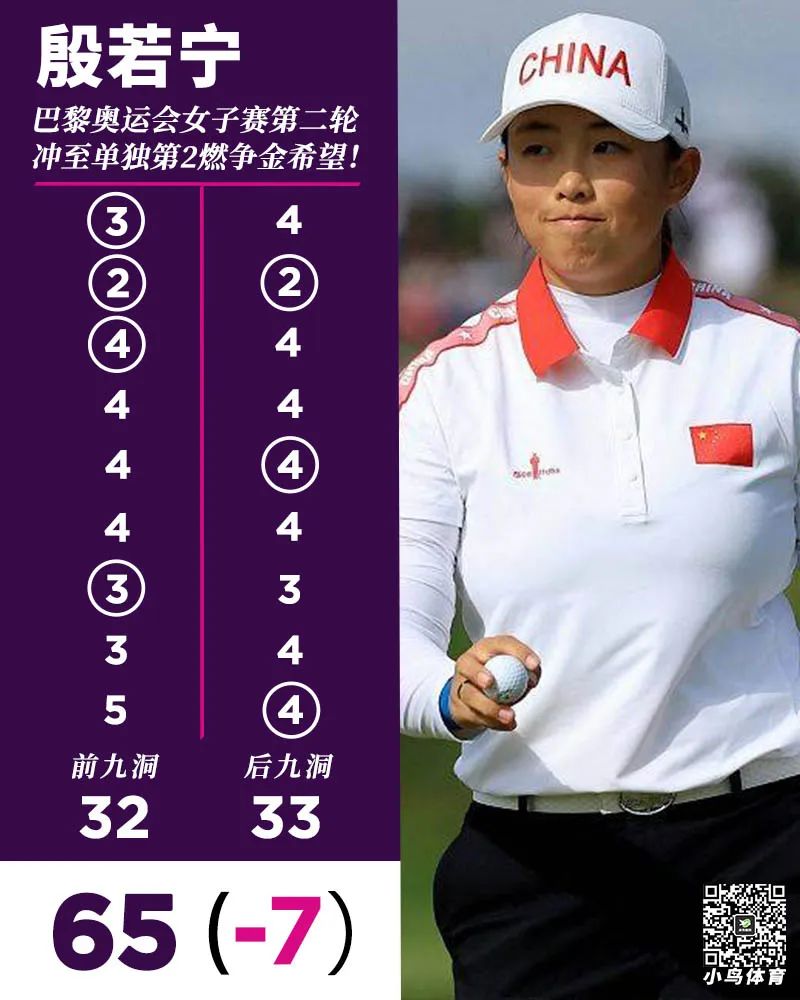65杆,不仅创下当日全场最低杆,也是中国大陆高尔夫球手在奥运赛场历史单轮第二低杆数,仅次于2021年冯珊珊第二轮生日当天的64杆——但如果只看低于标准杆杆数,殷若宁单轮的-7,其实已经追平了中国队奥运战史的最佳表现!