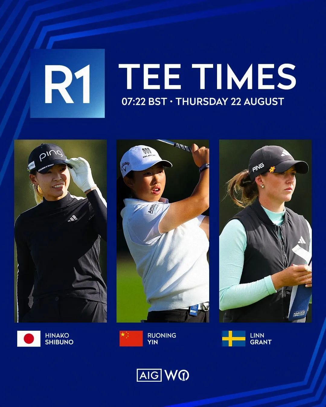 第一轮比赛,殷若宁将于北京时间周四14:22开球,同组2019年英国女子公开赛冠军涩野日向子,以及瑞典悍娃林恩·格兰特 (Linn Grant) ,从圣安10号洞出发,开启自己的第11场大满贯征程。