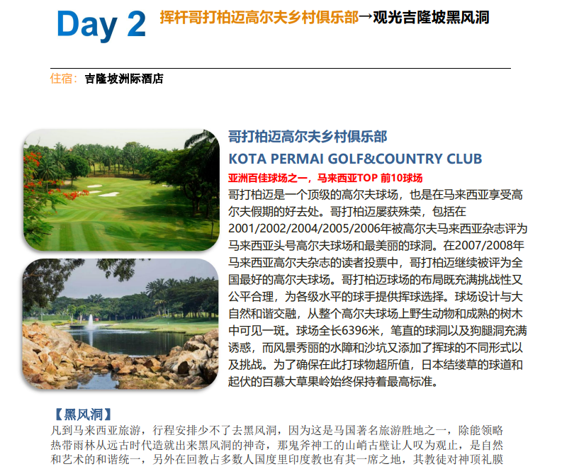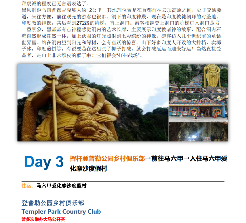 吉隆坡+马六甲+新山7天6晚5球三城畅享极致挥杆之旅