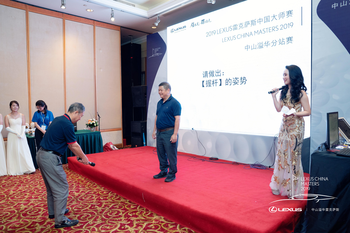 净杆前三名分别是郑北顺、邓财富、晏展华先生,恭喜他们获得中山溢华精心准备的雷克萨斯球帽夹套装、膳魔师男士保温杯、LS车模。
