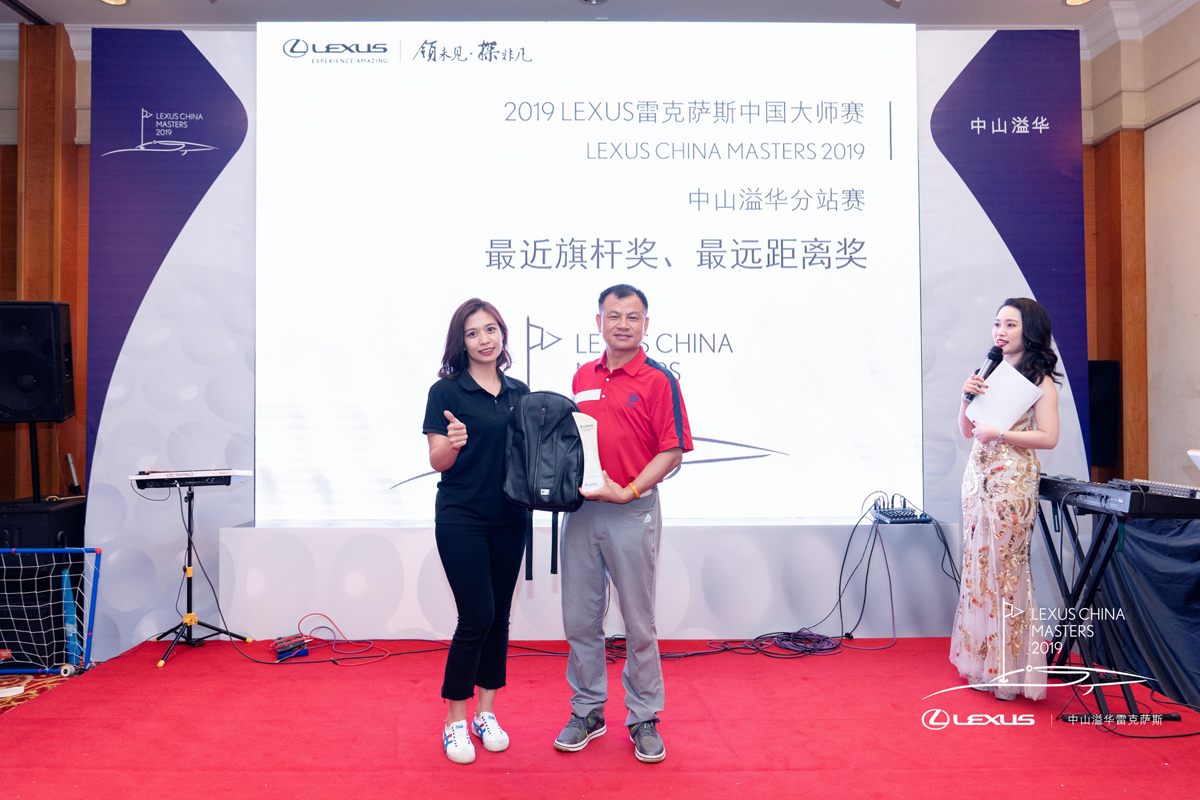 恭喜黄惠生和唐红生球员分别获得我们的最近旗杆奖和最远距离奖,奖品是中山溢华精心准备的雷克萨斯F-Sport背包。