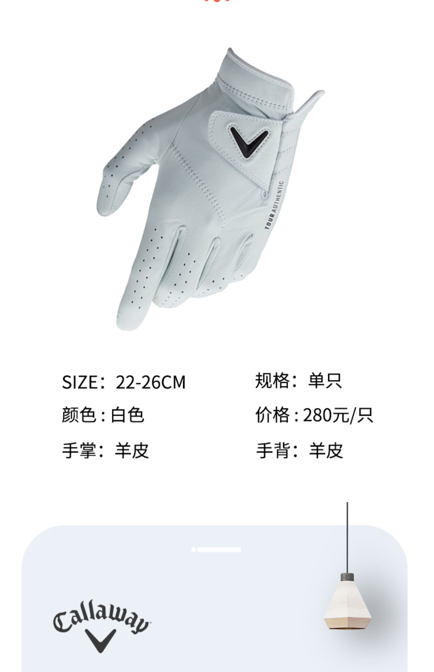 Callaway卡拉威高尔夫手套男TOUR 职业羊皮手套球星同款单只左手
