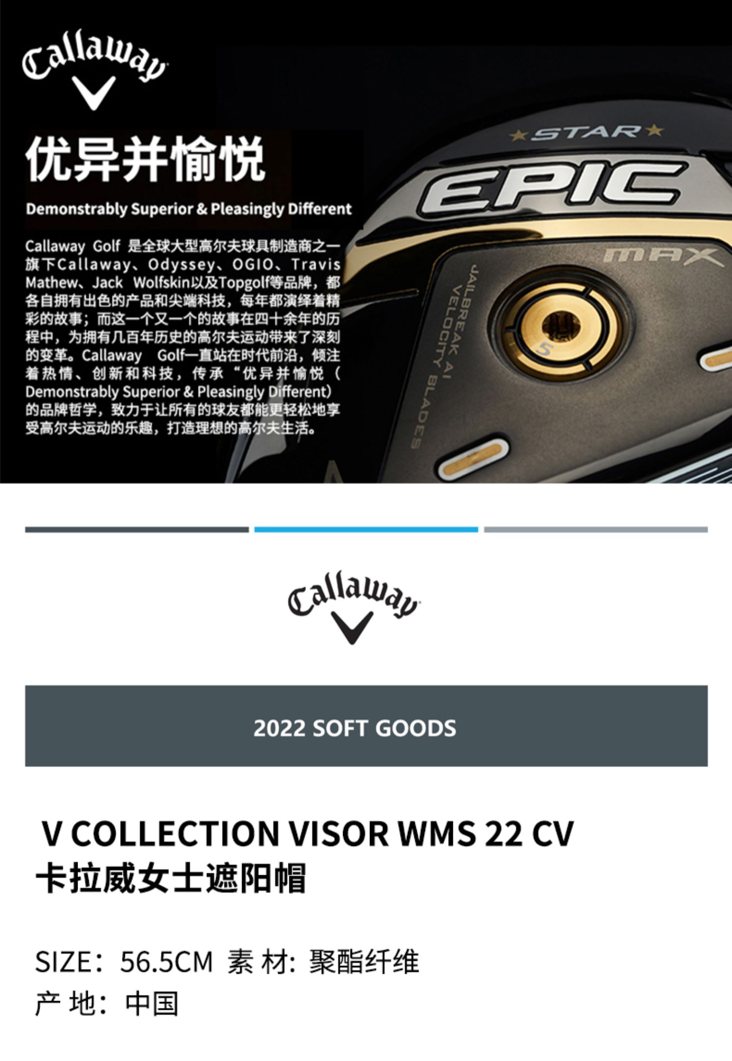 Callaway卡拉威高尔夫球帽女22夏季COLLECTION遮阳帽子白色无顶帽