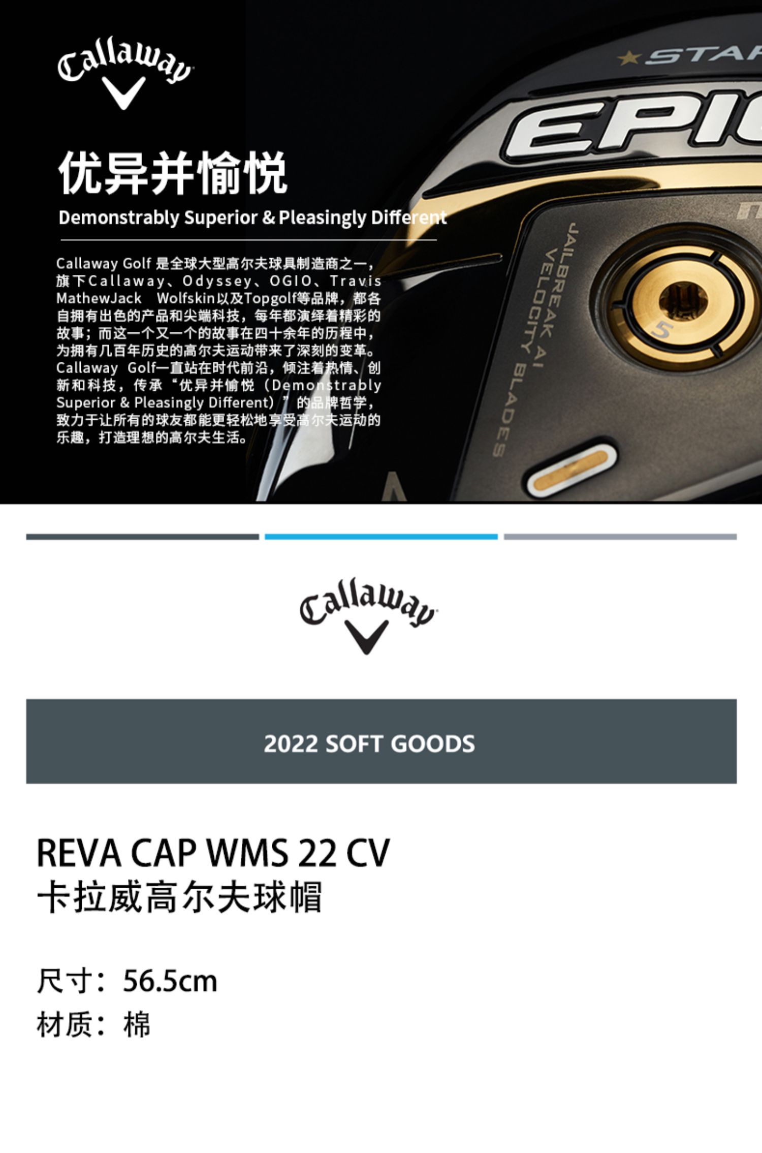 Callaway卡拉威高尔夫球帽女22夏季COLLECTION遮阳帽子白色无顶帽