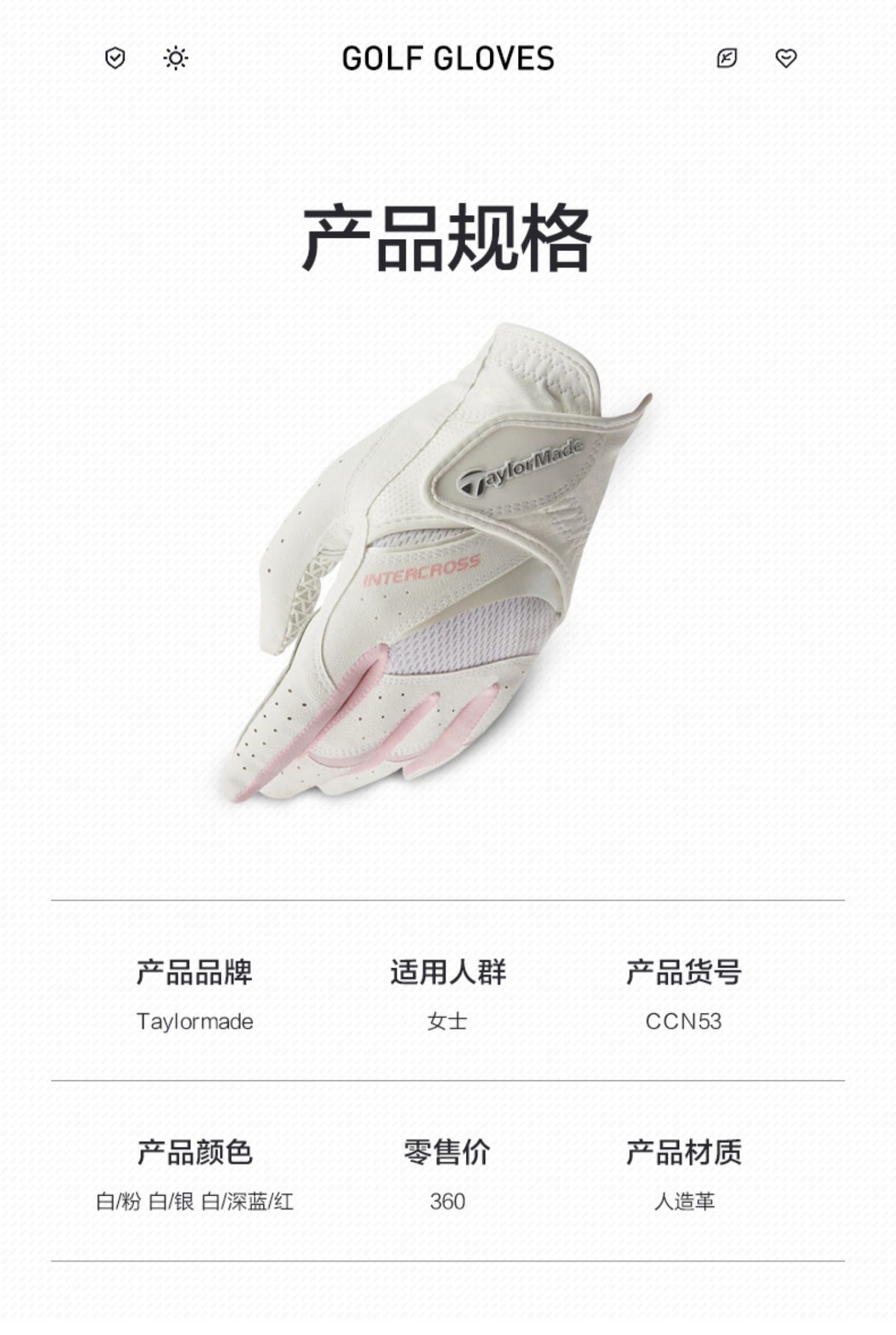 TaylorMade泰勒梅高尔夫手套女士golf羊皮双手耐磨防滑双手手套