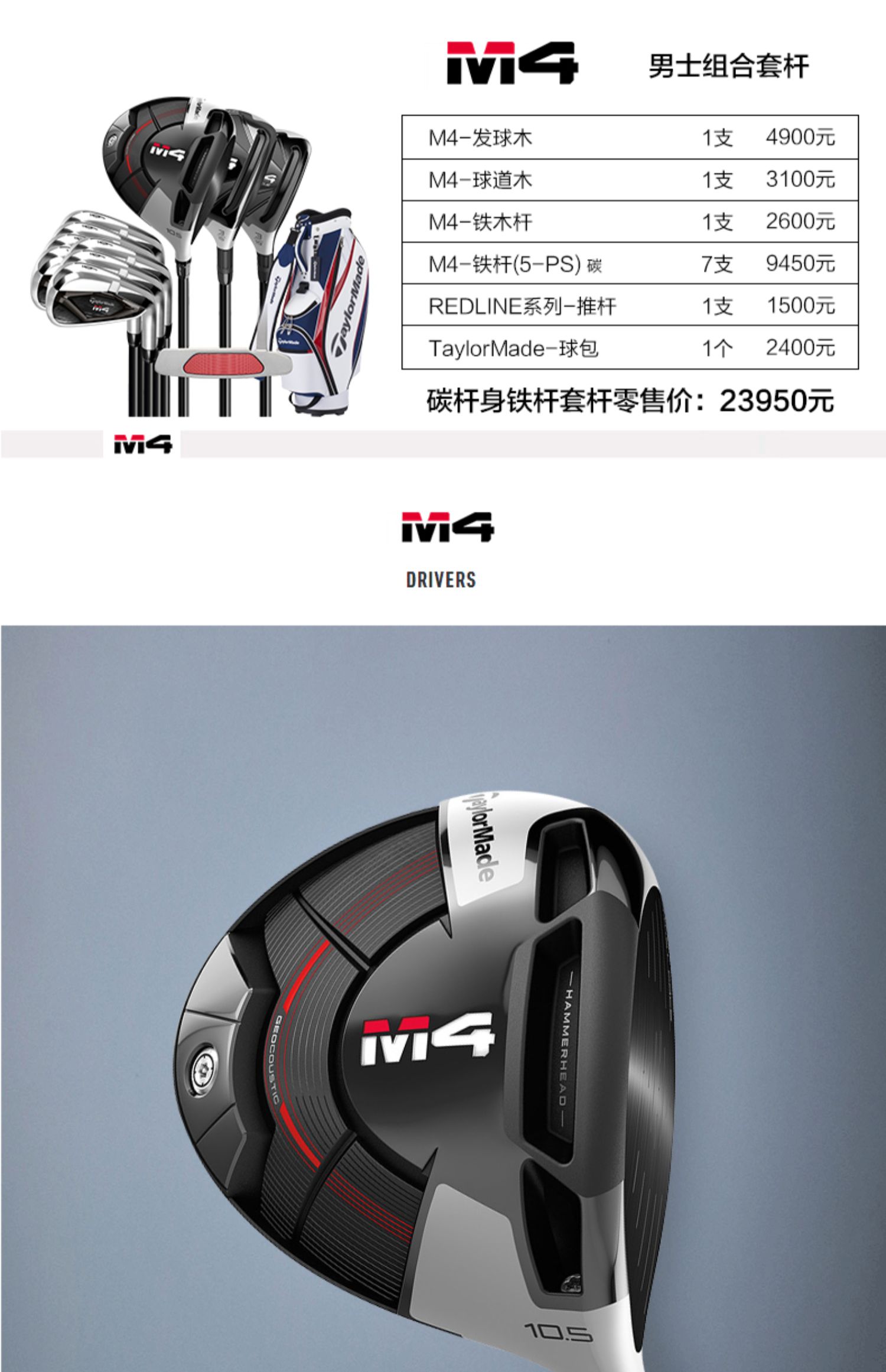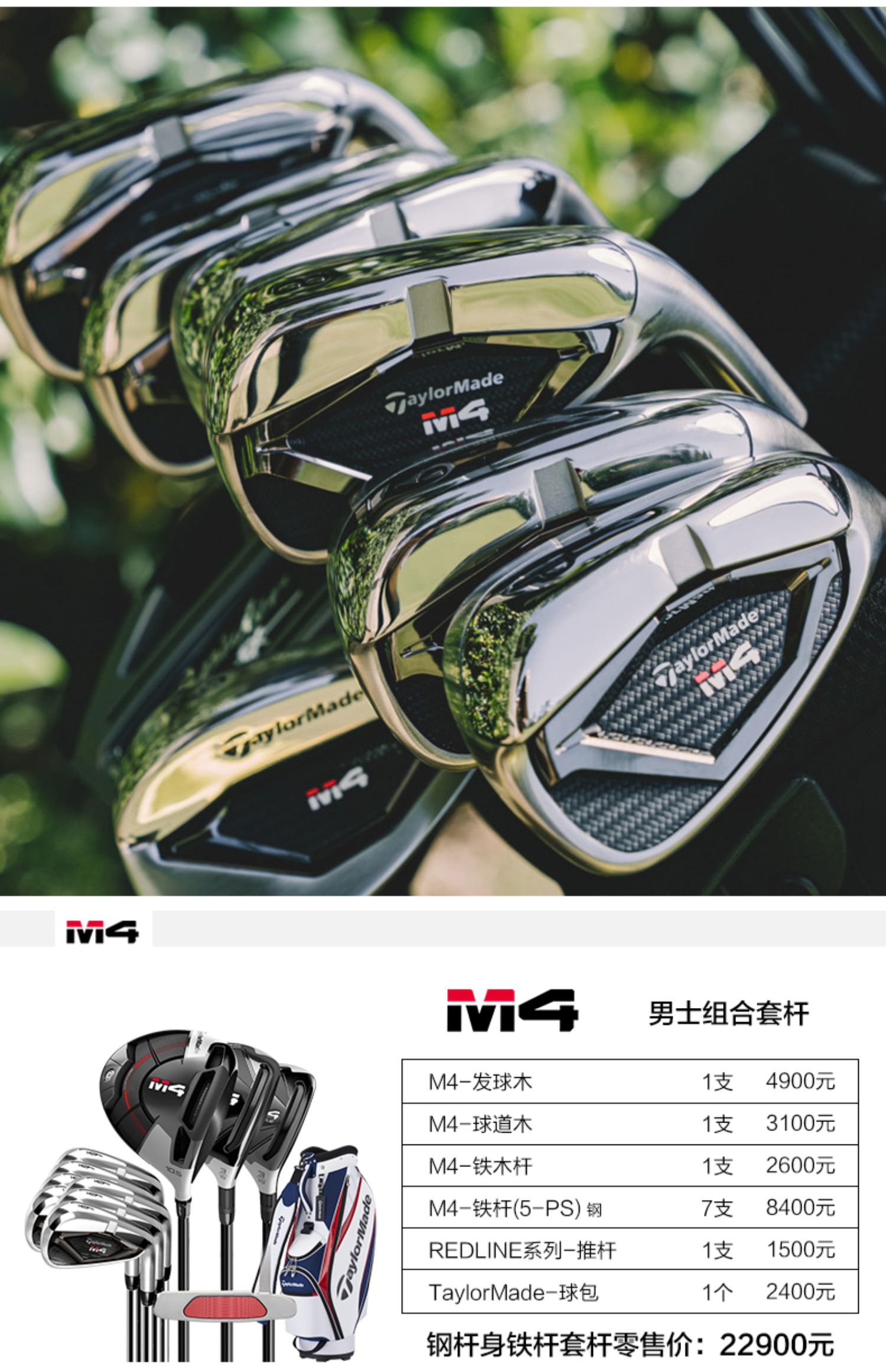 TaylorMade泰勒梅高尔夫球杆男士新款M4初学练习golf高容错套杆